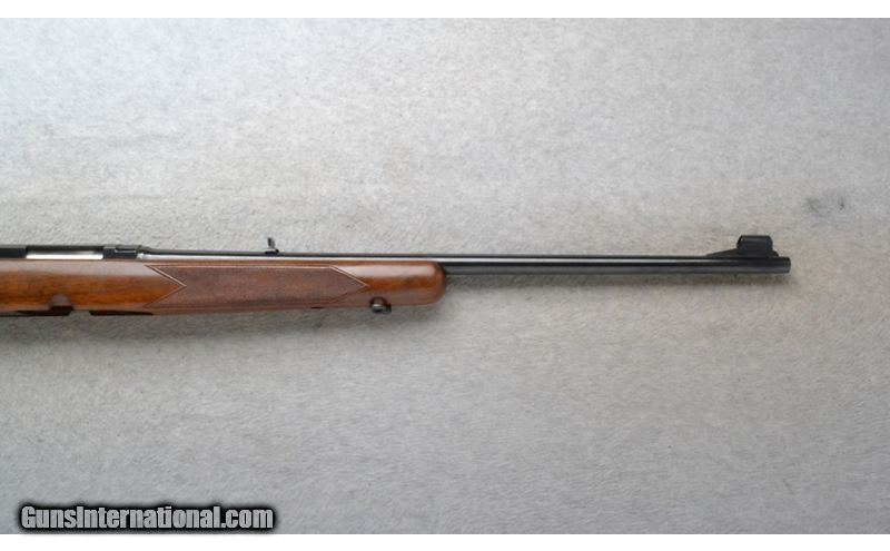 Description: This Winchester Model 88 is a right hand lever action repeating rifle in .308 Win. Cal. It has a 22 inch barrel. A hooded front blade sight and a folding adjustable notch middle sight. It is drilled and tapped for a scope mount. The butt stock is a checkered grip walnut pistol grip with a black steel cap. The forearm is a checkered grip walnut. .308 Winchester SOLD Chambers: Detachable Magazine. Metal Condition: Excellent. Wood Condition: Good. Has some surface finish repairs on the bottom. Bore Condition: Excellent. Barrels: 22 inch. Stock Dimensions: LOP 13 3/4 inches. Fore End: Checkered grip walnut. Butt Pad: Winchester checkered black plate. Weight: 7 lb. 0 oz. Sights: Hooded front blade. Folding adjustable notch middle. Drilled and tapped for a scope mount. Item Location: Richfield, WI |