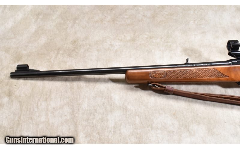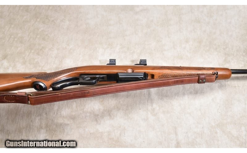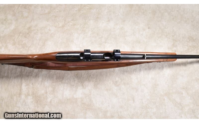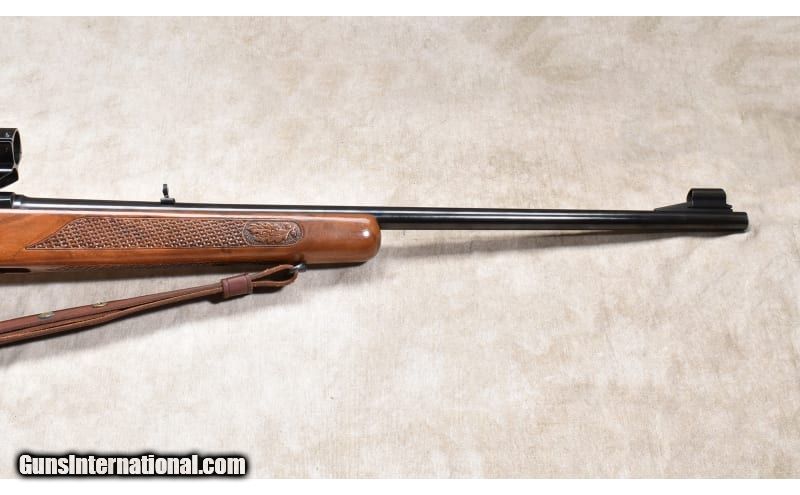 Description: The Model 88 was produced to modernize the Winchester rifle line up. It departed from the 60-year-old designs by utilizing detachable box magazine and hiding the hammer inside the action. By doing so, the user could carry an extra, loaded, magazine for backup. The rifle could also use more powerful cartridges with Spitzer bullets resulting in more reliable accuracy and better success. This one was produced in 1958 and features a high grade walnut stock with oak leaf and basket-weave checkering. The hood over the front sight is intact, and overall the rifle is in marvelous condition. .308 Winchester SOLD Chambers: 4 rounds Metal Condition: Very good to excellent. Wood Condition: Very good to excellent. Bore Condition: Shiny and bright with good rifling. Barrels: 22 inches Triggers: Factory trigger. Stock Dimensions: LOP: 13-5/8 inches Butt Pad: Black plate Weight: 7 lb - 9 oz Sights: "Hooded bead and folding leaf open sights, drilled and tapped for scope. Item Location: Rogers |