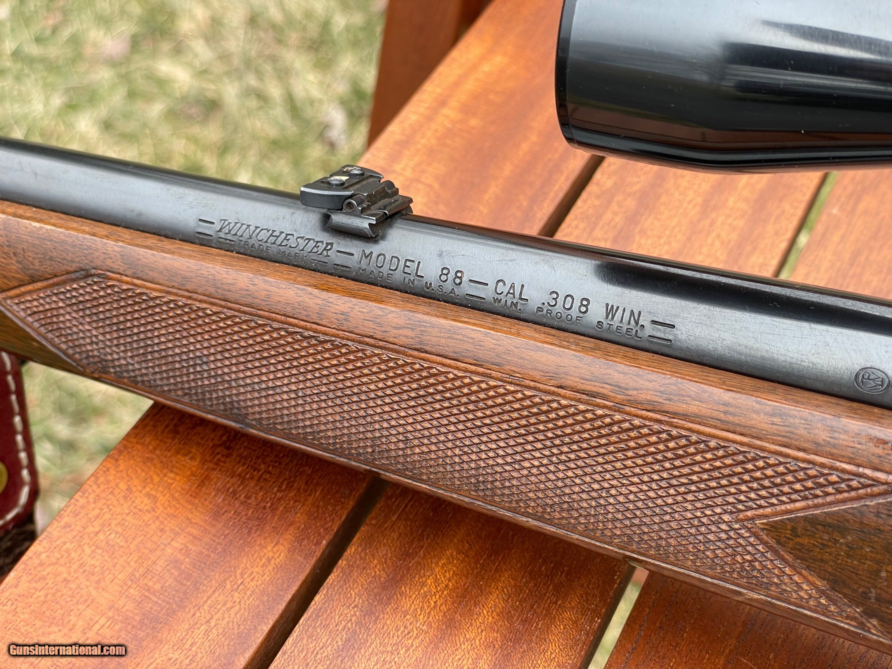 Description: Winchester 88 .308 Win Lever action with detachable magazine. Comes with one magazine. 22" barrel. Weaver K4-E scope mounted to peep sight base. Lyman aperture sight can still be used. Overall in good condition. Stock has some handling marks, Bluing on metal is excellent. Rifle Caliber: .308 Winchester Manufacturer: Winchester Model: 88 Price: $1,100.00 Shipping: $45.00 Contact Seller |