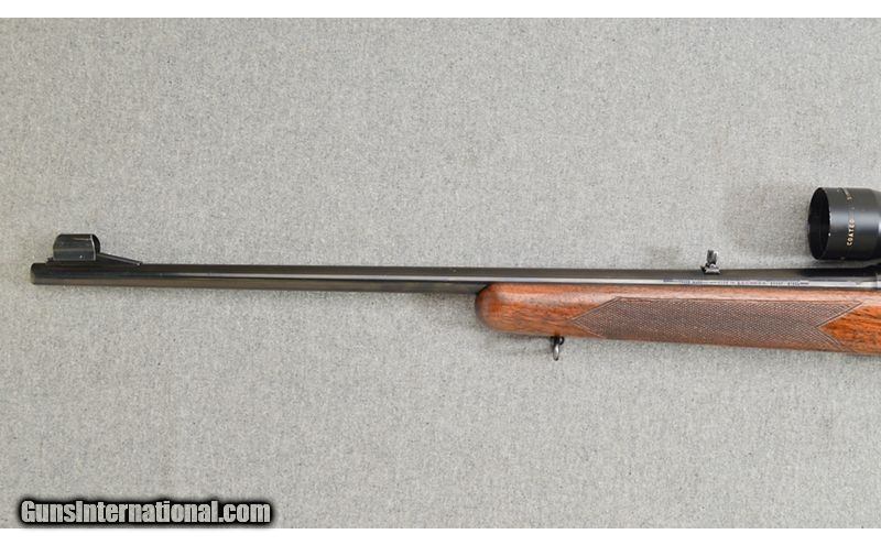 Description: For your consideration, a Winchester Model 88 chambered in .358 Winchester. While retaining its original Lyman iron sights, the piece is topped with a Simmons 3-9×40 "8-Point" scope. Prospective owners should expect minor nicks and dings evident from regular use, and thinning bluing on the lever and magazine. This example was made in 1958. .358 Winchester SOLD Metal Condition: Very Good Wood Condition: Very Good Bore Condition: Very Good Barrels: 22 Triggers: Serrated Stock Dimensions: 13.75" LOP Fore End: Checkered Butt Pad: Checkered Plastic Weight: 7 lbs 13 oz Sights: Iron Sights and Simmons Scope Item Location: Las Vegas, NV |