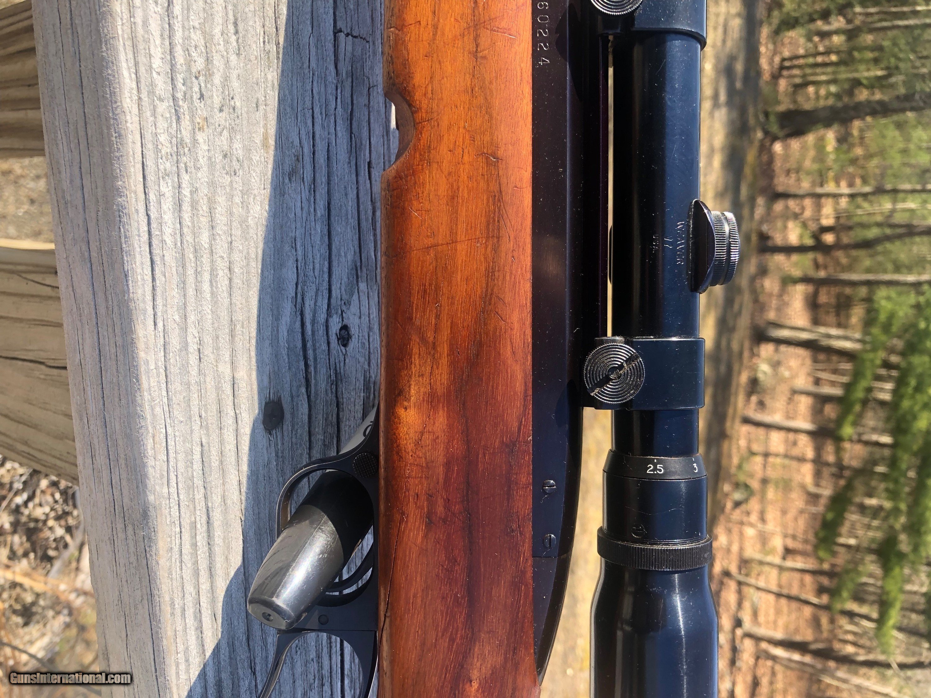Description: Here's a Winchester 88 Post 64 .284 that will make a great shooter. The metal is pretty good with some blueing loss up on top of the barrel. The bore is excellent. It Doesn't Have A Magazine. The Stock Is Cracked On The Left Side. It looks like it can be easily repaired. It has a Weaver base and rings with a Weaver V7 2.5 - 7 with a Duplex Reticle. The plastic on the front bell is broken. Please ask questions prior to purchasing. Please make sure that your FFL Dealer will accept this weapon from a NON FFL DEALER. Postal Money Orders will be the method of payment. SOLD |