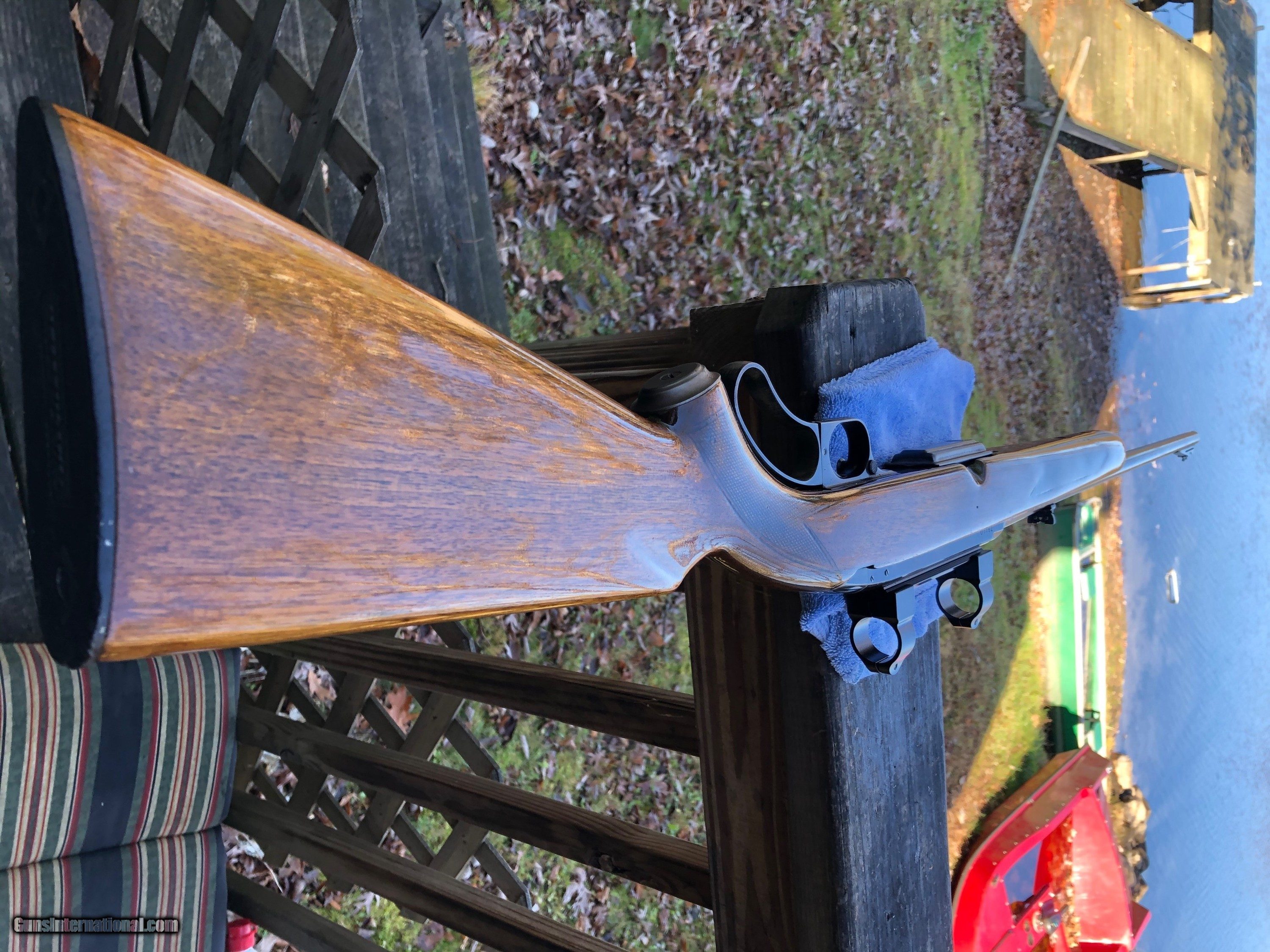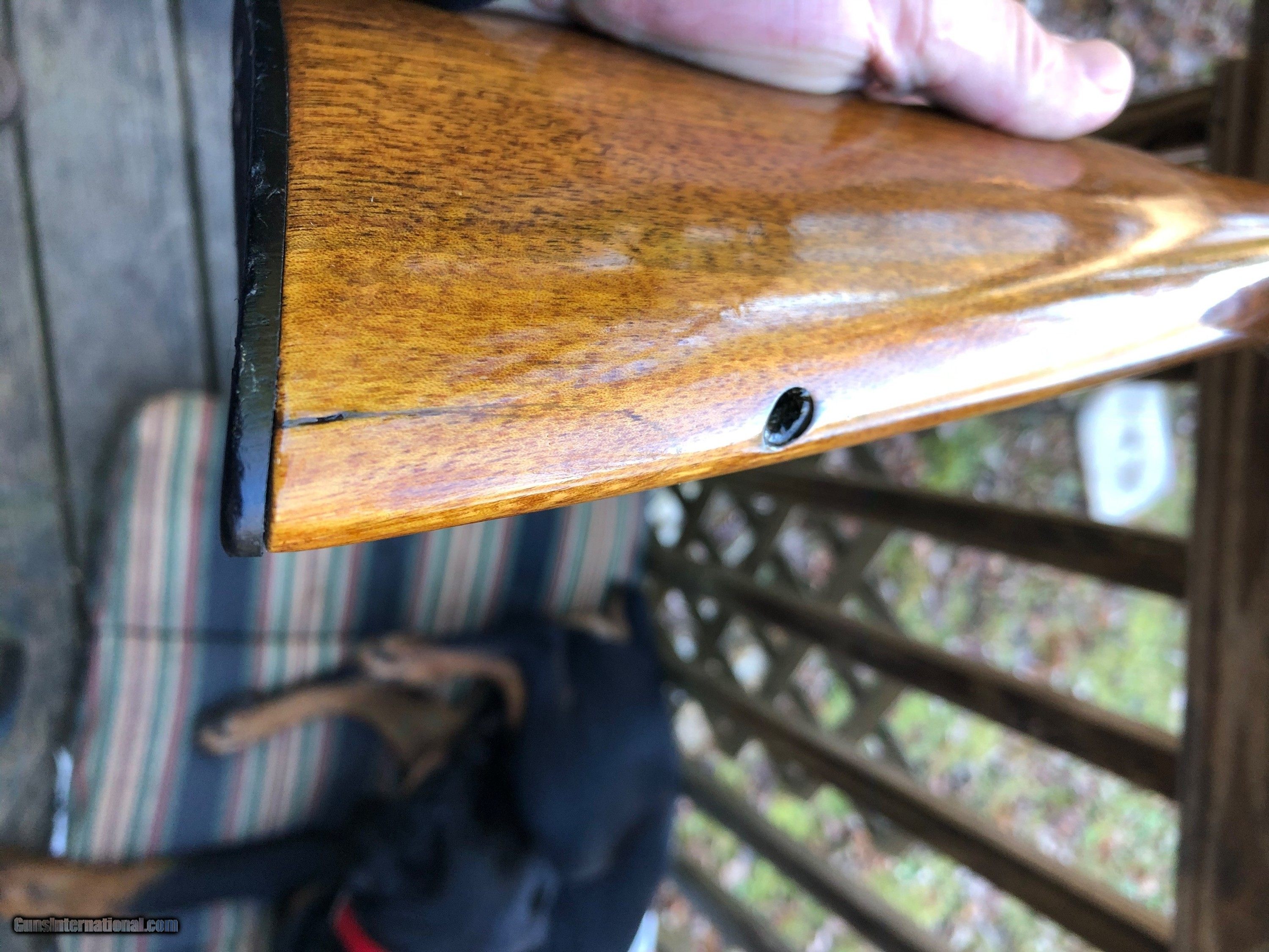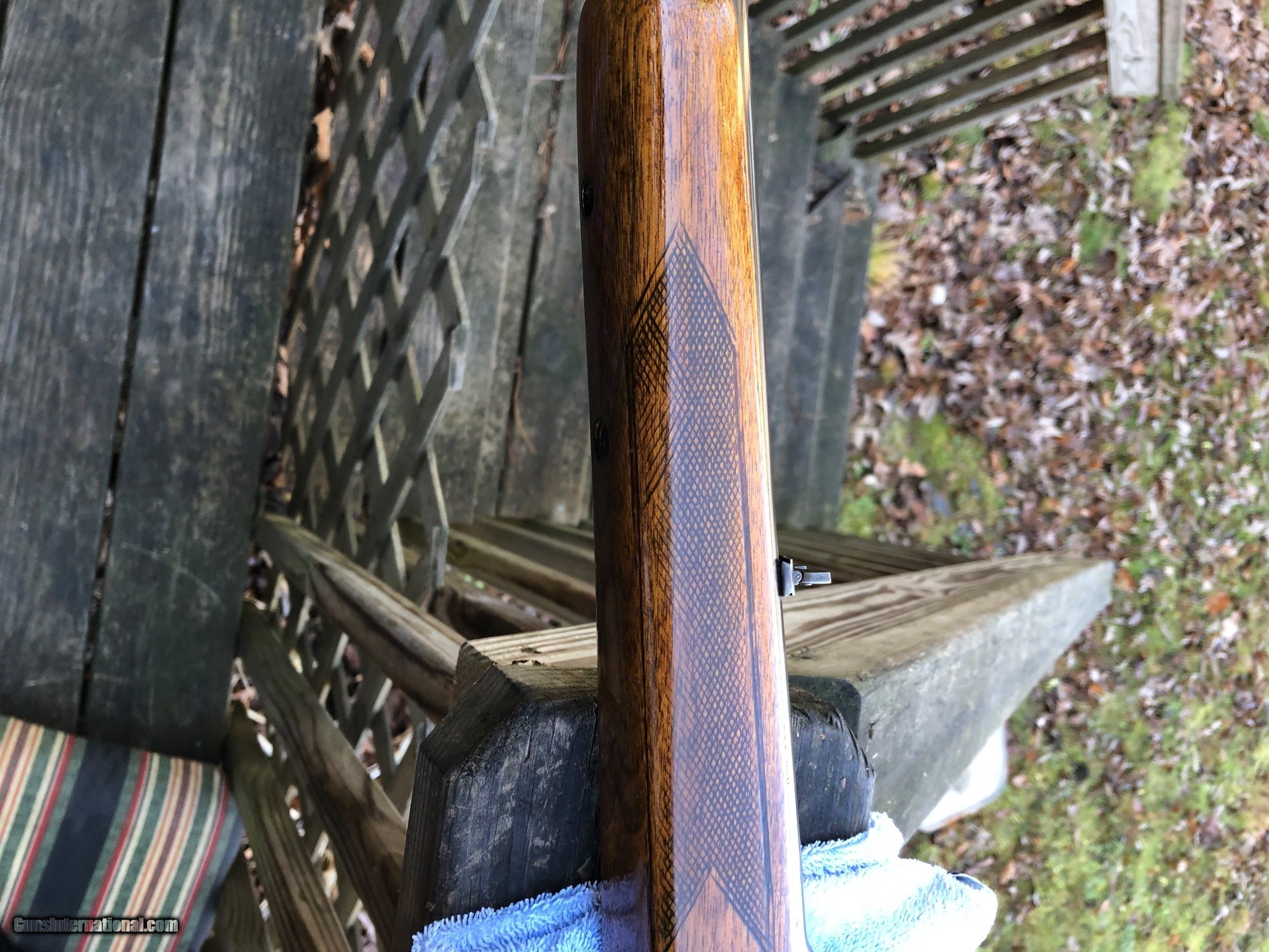 Description: Here's a 1959 Winchester 88 .308 that will make a great shooter. The metal has thinning in the blueing, not bad for a 61 year old rifle. The bore is very good. The stock has been notched for a peep sight. It has been heavily sanded and refinished. It's missing the swivel studs. It has an aftermarket magazine. Please ask questions prior to purchasing. Please make sure that your FFL Dealer will accept this weapon from a NON FFL Dealer. Postal Money Order will be the method of payment. SOLD |
