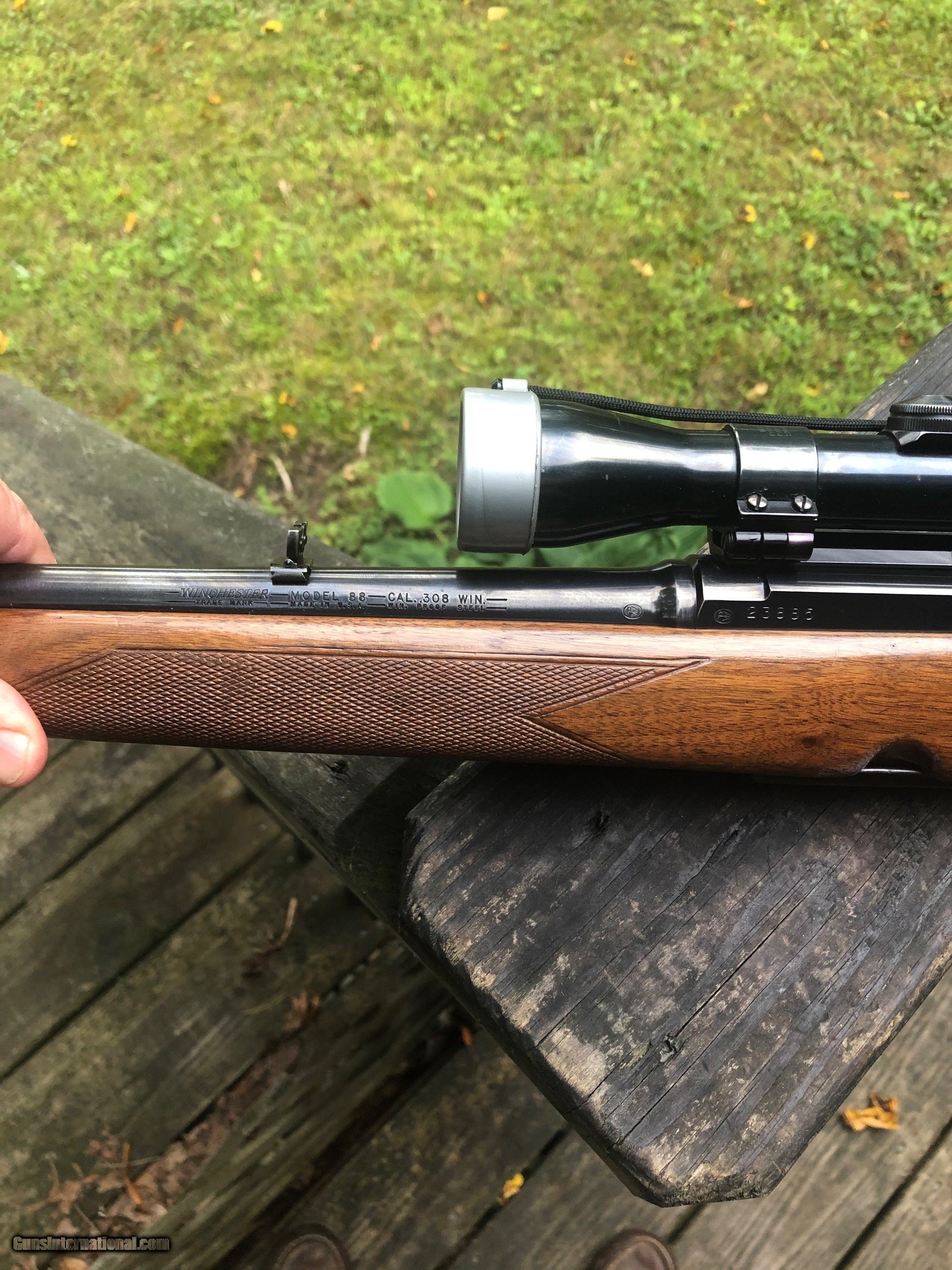 Description: Sale Pending 10/21/20.Here's a Beautiful 1956 Winchester 88 .308 Pre 64 Rifle. The metal is excellent. The bore is excellent. The wood is excellent with a small chip missing at the toe. The Rifle hasn't seen much use. It comes with a Weaver K 4 with a cross hair reticle and Weaver tip off mount. Please ask questions prior to purchasing. Please make sure that your FFL Dealer will accept this weapon from. NON FFL DEALER. Postal Money Order will be the method of payment. SOLD |