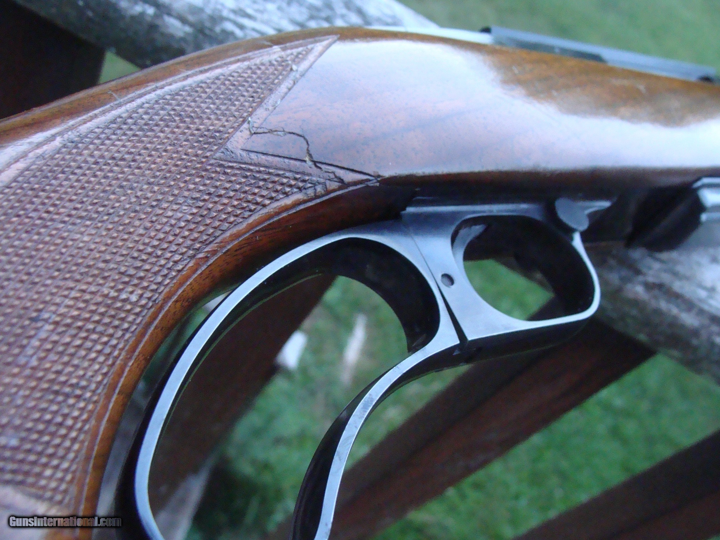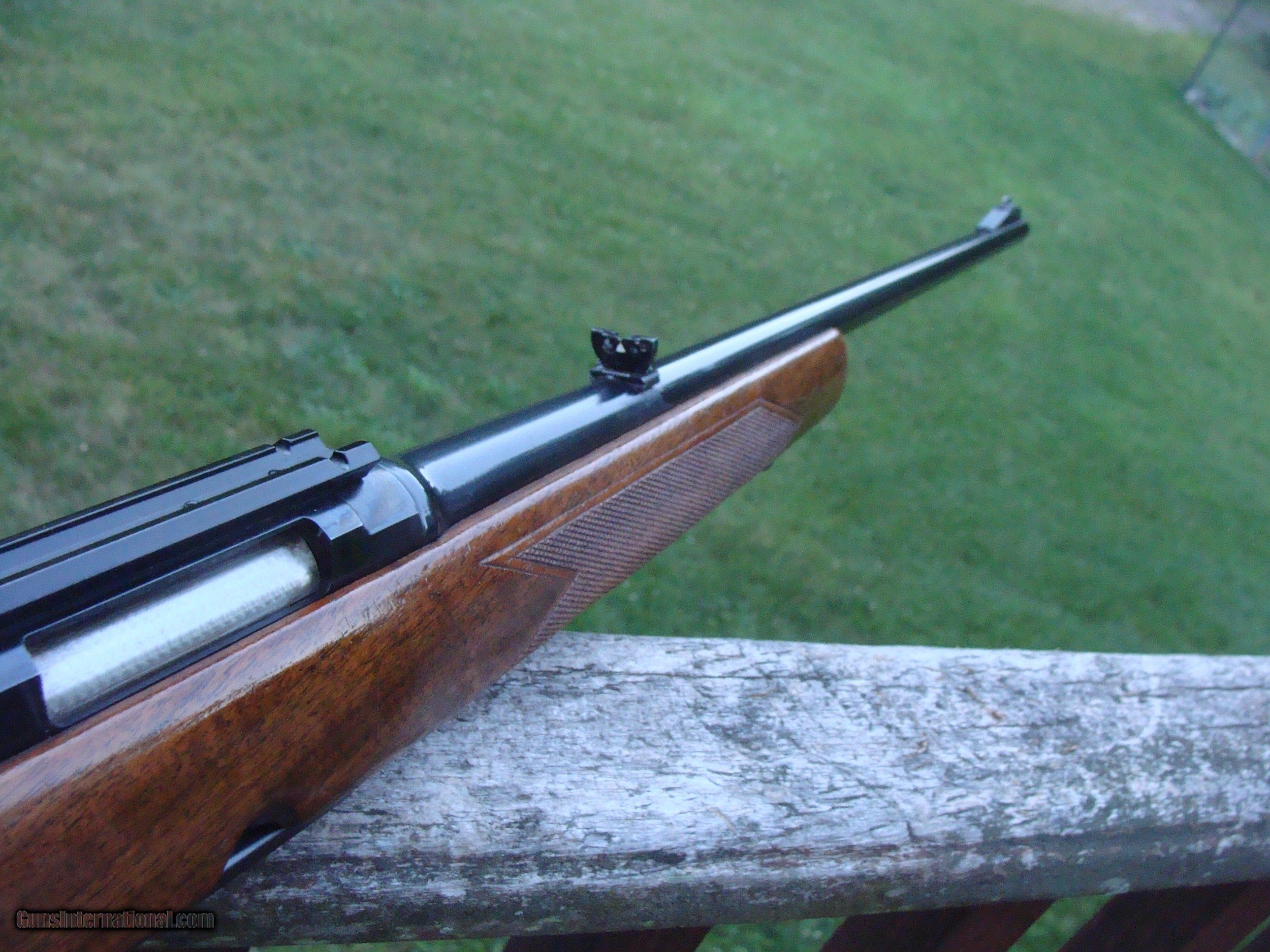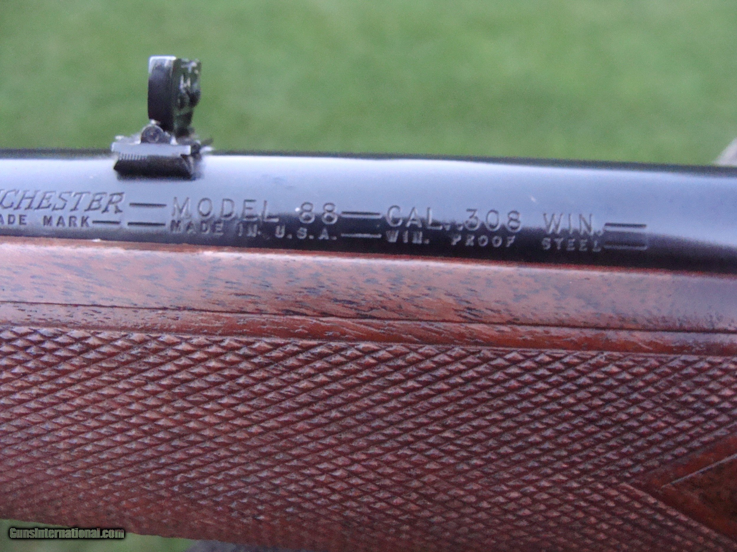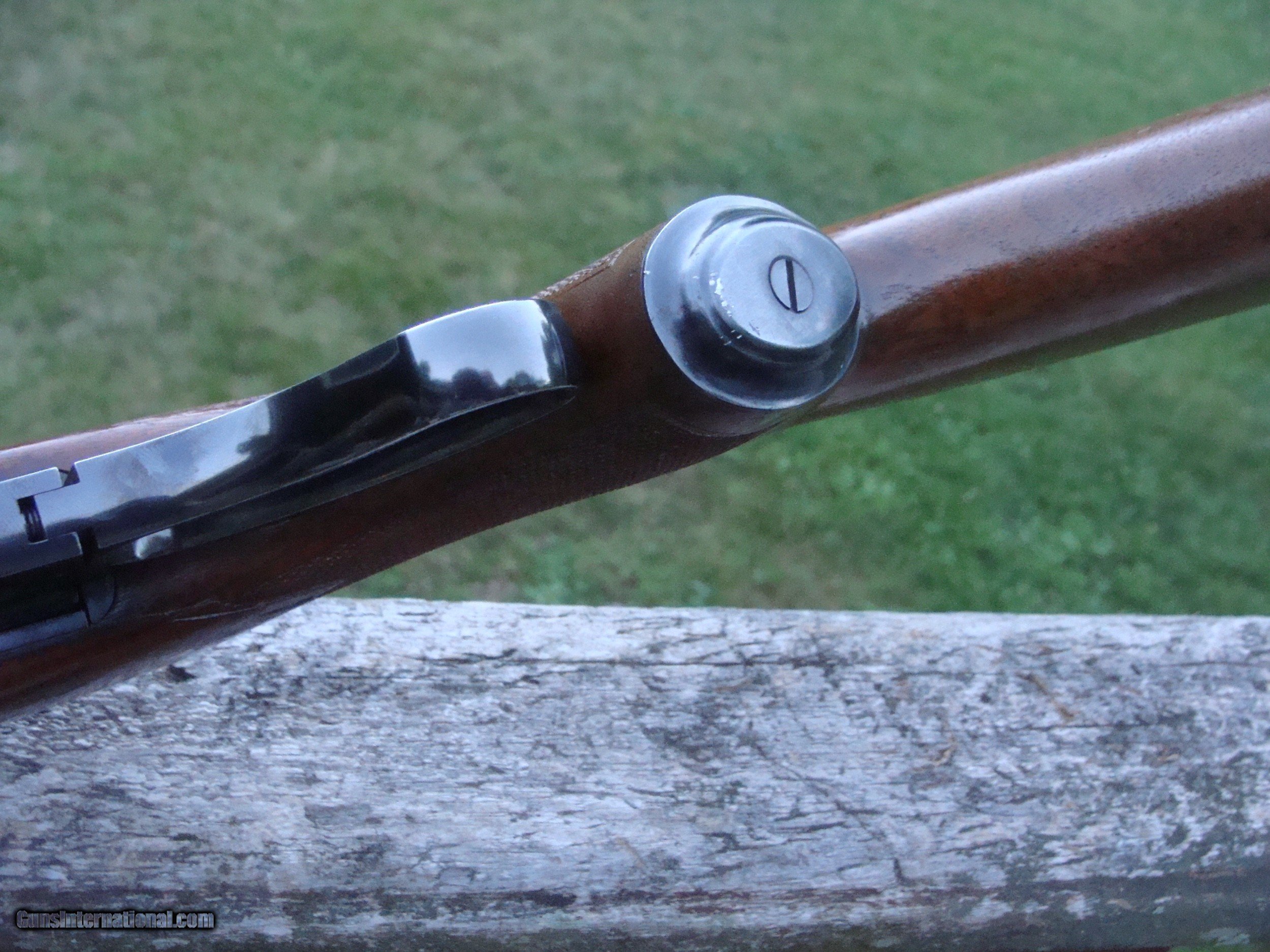 Description: Model 88's and esp the very high quality pre 64 guns are both beautiful and functional with graceful lines, fast short throw lever and chambered for modern powerful cartridges. The very early guns are distinguised by what can best be described as a dovetail with the top of the receiver with a thumbnail type shape fitting into the upper part of the pistol grip; later guns had the receiver squared to the upper pg. The metal on this gun is in not far from new cond with no blemishes worthy of mention (the blueing on early 88's was 2d to none when they left the old factory in New Havern Ct. The handsom strait grained factory hand checkerd American Walnut stock retains most of the original finsh and is in excellent overall condition; checkerin shows almost no wear althouth some of the finsh has lightly rubbed off the left side of the butt stock. There may have been a small chip repaire at one time on the right pg checkering panel; it is difficult to say (very small) which may be seen in the pics. There are a number of light compression marks on the stock which may be removed by steaming or filled wht light thin applications of Tru Oil or simial. The gun is completely original with no non factory holes. The factory sling swivels were replaced with qd type swivel studs and there is some finish loss around the front stud where the sling (no longer on the gun) has rubbed it. We are calling the overall cond. 90% however the metal is much closer to 100 % There is a period correct one piece Weaver scope base mounted on the rifle. We have many good period correct uses scopes as well as more many used more modern ones avail (call to inquire) Shipping is $ 59.00 SOLD |