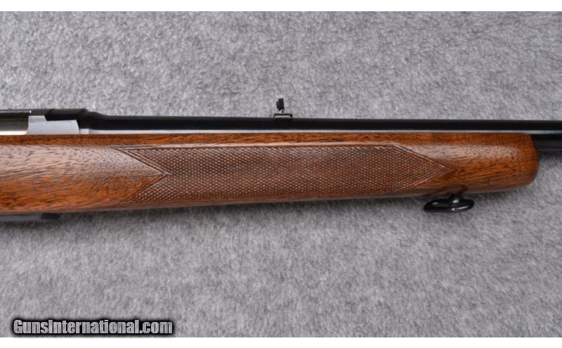 Description: Wood and original blue are excellent throughout. Front sight hood is missing. Excellent bore. No box. SOLD Manufacturer: S/N 92XXX Caliber Info: .308 Win. Metal Condition: Excellent Wood Condition: Excellent Bore Condition: Excellent Barrels: 22 Triggers: Factory Stock: Checkered Walnut Pistol Grip with Black Metal Cap Stock Dimensions: 13 3/4" LOP Fore End: Checkered Walnut Butt Pad: Orange Vented Rubber Pachmayr Pad Weight: 7 LB Sights: Post Front - Folding Leaf Rear - Drilled & Tapped for Scope Item Location: Wheeling, WV |