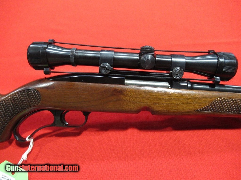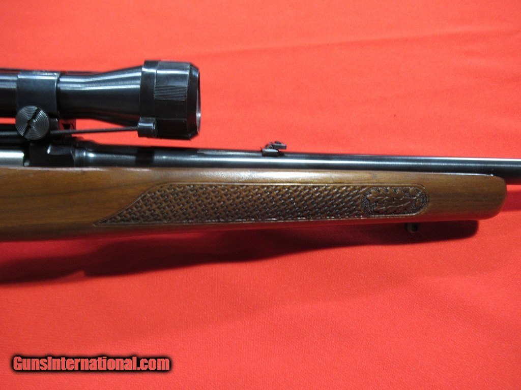 Description: 1966 Manufactured Winchester Model 88: Very nice condition with some light handling wear around the sling studs, basket weave checkered, folding rear sight, hooded front sight, topped with a Weaver K4 60-C. Comes with one magazine. SOLD |
