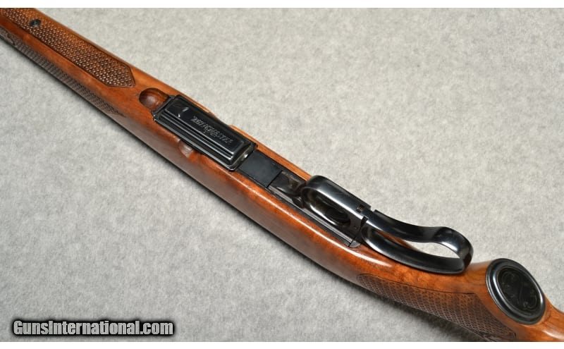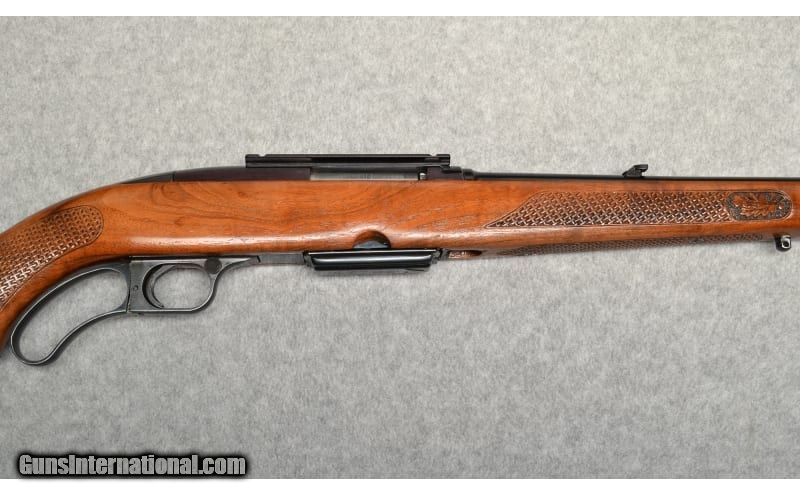 Description: This Model 88 was the first really modern lever action made by Winchester. It is magazine fed, included with the Winchester logo. The pistol grip Walnut stock has the basket weave pressed checkering and black grip cap with checkered plastic butt plate. The round barrel is blued with ramp front sight and folding leaf rear sight. Someone has mounted a scope rail in the factory drilled holes, and also has sling eyes for sling mounts. The walnut stock is in great condition with just very minor handling marks with the metal having light wear on the barrel from handling, and the receiver turning a slight plumb color which is typical of rifles of this era and age. The bore is bright with well-defined rifling, overall a great condition rifle and fantastic collectable. .308 Winchester SOLD Chambers: .308 Winchester Metal Condition: Great Wood Condition: Great Bore Condition: Great Barrels: 22 Triggers: Factory Stock Dimensions: LOP 12-3/4 Fore End: Basket weave pressed checkered walnut. Butt Pad: Checkered plastic butt Weight: 7.5 lbs Sights: Ramp front sight and folding leaf rear. Item Location: Columbus, OH |