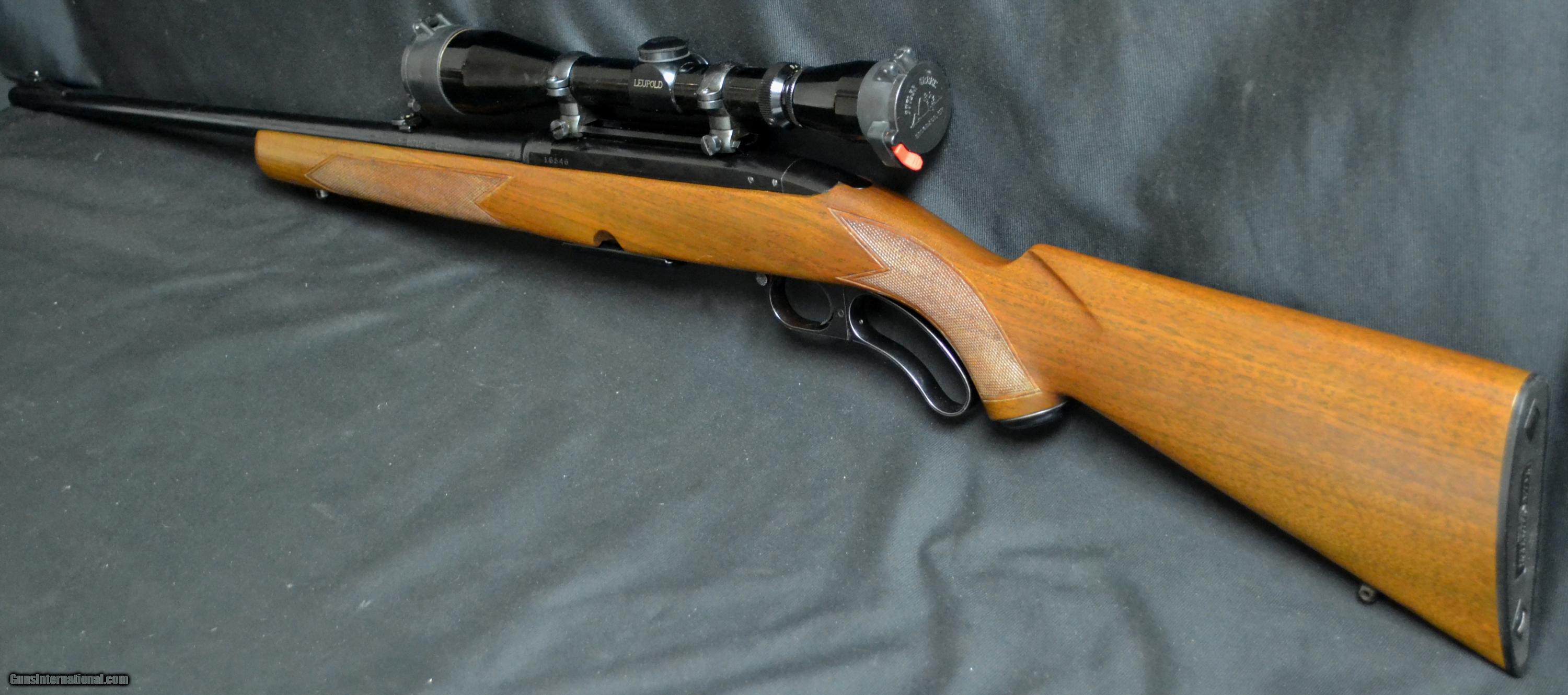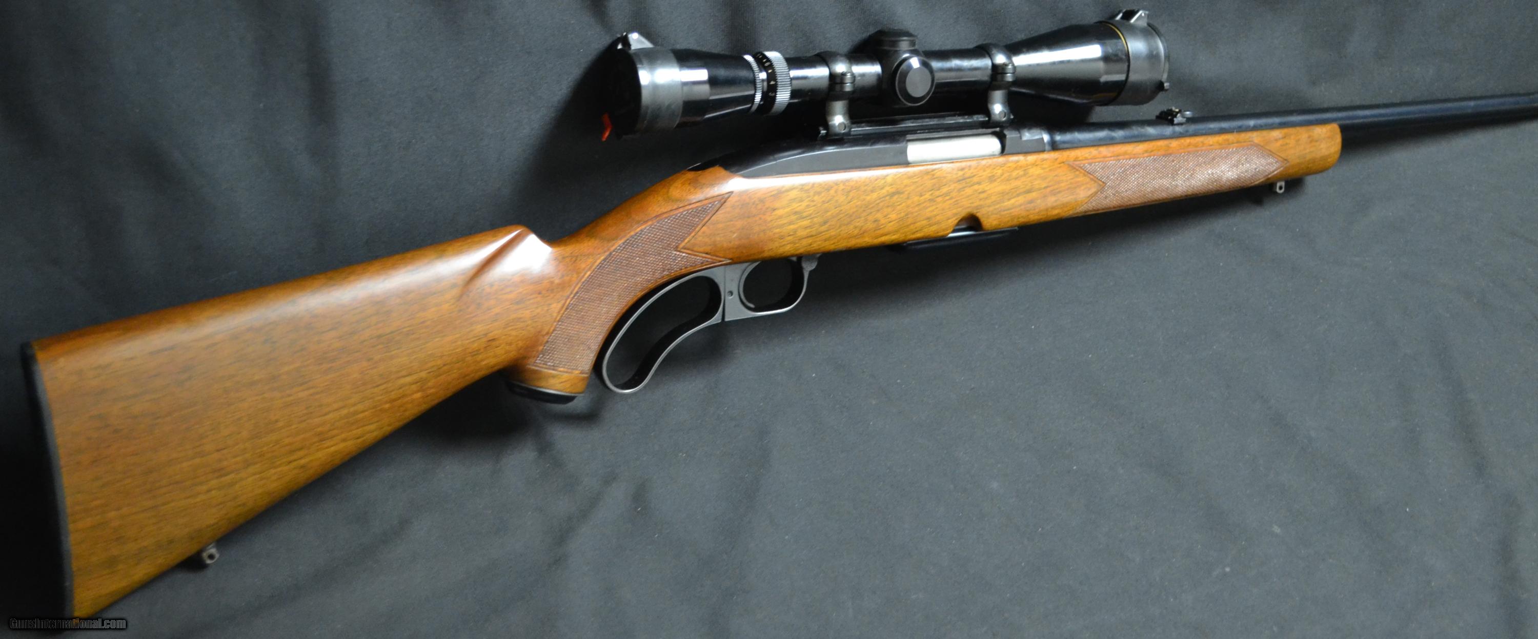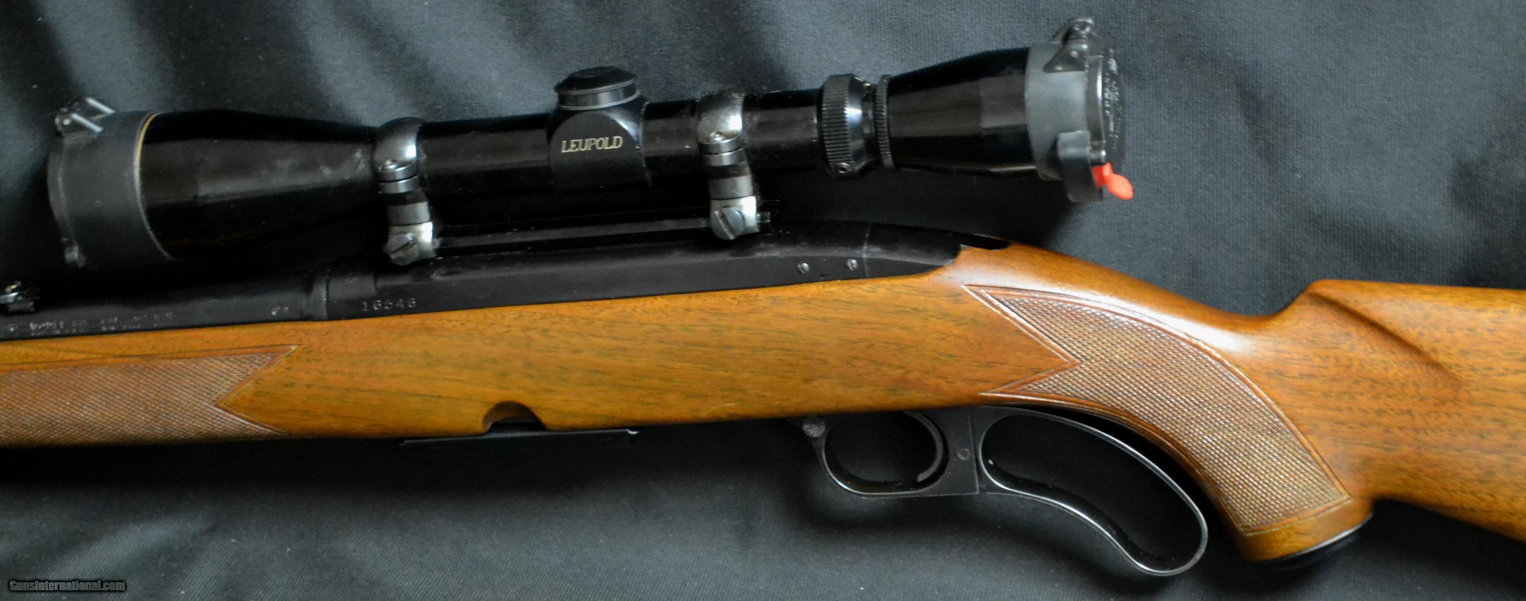 Description: WINCHESTER – Model 88, .358, 22” Metal capped pistol grip stock, Winchester factory butt plate, detachable box magazine, 1955 manufacture with clover tang, near perfect condition with minor marks on wood, factory open sights, sling mounts, includes Leupold 3x-9x scope, obtained locally from retired Winchester employee. Inv# 34499 13 7/8” LOP 7lb. 12oz. $3750.00 SOLD |