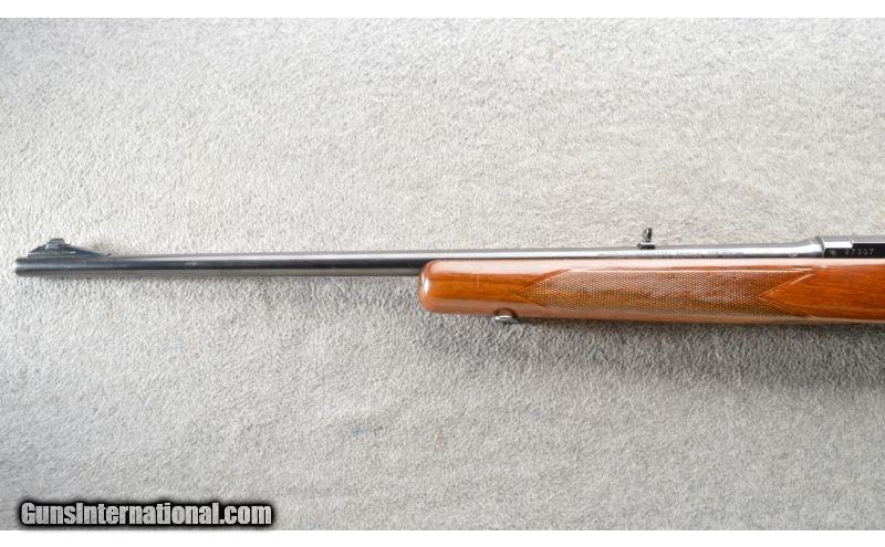 Description: This is a nice and early Winchester model 88 rifle in .308 Win. The rifle was made in 1956 and remains in very nice condition. The blue is quite strong with some muzzle wear and minor thinning on the barrel. There was a scope base on the rifle at one time and there is some wear on top of the receiver as well. The walnut stock is very nice with only a few light dings and a new coat of finish added. All in all a very nice early rifle. SOLD Curio/Relic: Yes Manufacturer: 1956 Caliber Info: .308 Win Chambers: Lever action repeater. Metal Condition: Very good with minor wear. Wood Condition: Very good with gloss finish added. Bore Condition: Bright and shiny. Barrels: 22 inch blue with sights. Triggers: Single. Stock: Nice walnut with a checkered pistol grip and steel grip cap. Stock Dimensions: 13 5/8 Inch LOP. Fore End: Matching checkered walnut with a sling mount. Butt Pad: Winchester black butt plate. Weight: 6 Lbs 15 Oz. Sights: Adjustable folding rear and a blade on ramp front. Extras: Comes with 1 mag. Item Location: Owatonna, MN |