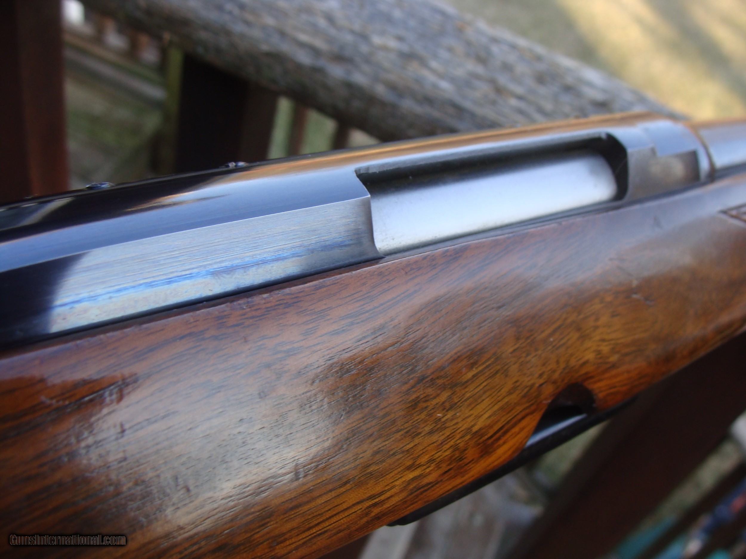 Description: ON HOLD FOR CHAD 3/21/22 Extraordinary condition and one of fewer than 19xxx made in the collectable lst yr and this one is in the 12xxx range. Only the lightest handling marks distinquish this from new condition with a little loss of finish on butt stock near the butt plate. Metal is approx 100% and sitll has the front site hood. The blue is typical of the exceptional care and workmanship at Winchester prior to 1964 and is the deepest rich blue and free from almost any evidence of handling or use. The sling swivels have been replaced with qd types but these are readily avail from many sources should anyone wish to replace with the conventional type. It does not appear that a scope had ever been mounted. Correct rear site and filler screws are in place. Shipping is $ 55.00 (more to ak and hi) IF IT DOES NOT SAY NEXT TO THE PRICE..."SALE PENDING OR UNDER DEPOSIT"...IT IS AVAILABLE. WE DO NOT REPLY TO INQUIRIES THAT SAY "INTERESTED IN THIS GUN" OR "IS IT AVAILABLE" IF YOU WOULD LIKE TO BUY THIS OR ANY OF OUR GUNS WE SUGGEST YOU PHONE US; WE ARE OFTEN AVAIALABLE LONG HOURS. IF YOU ARE INTERSTED IN A GUN THAT IS UNDER DEPOSIT AND WOULD LIKE TO BE NOTIFIED IF A SIMILAR GUN COMES IN DROP US A LINE AND WE WILL MAKE EFFORTS TO CONTACT YOU WHEN ONE DOES COME IN. WE HAVE OVER 2000 SALES ON ALL SITES WITH AN A+ RATING ON ALL WE ALSO KEEP AN INVENTORY OF OLDER PERIOD CORRECT SCOPES; CALL WITH NEEDS WE MOSTLY PICK VERY CLEAN AND LIGHLTY USED GUNS. WE ARE HAPPY TO TAKE CONSIGNMENT GUNS AND COLLECTIONS OR WILL BUY YOURS OUTRIGHT. WE SOMETIMES ARE EMPLOYED FOR ESTATE PURPOSES AND VALUATIONS. CT RESIDENTS MUST CONTACT US TO UNDERSTAND OUR IN STATE TRANSFER POLICIES. PAYMENT USPS MONEY ORDER ONLY AT THIS TIME. ( WE CAN TAKE A DEPOSIT WITH A CARD BUT THE GUN MUST BE PAID WITH A USPS MONEY ORDER) IT IS THE BUYERS RESPONSIBILITY TO GET US A COPY OF YOUR RECEIVING FFL'S LIC AND A COPY OF YOUR PHOTO ID BEFORE THE GUN SHIPS YOU MUST CALL YOUR FFL.WE DO NOT CALL FOR YOU. LAYAWAY PURCHASES NOT COMPLETED OR ANY RETURNED ITEM UNLESS NOT AS DESCRIBED OR DAMAGED ARE SUBJECT TO A 10% RELISTING/RESTOCKING FEE AND MUST BE RETURNED WITH NO NEW MARKS OR SCRATCHES, SENT BACK INSURED, PRIORITY SIGNATURE REQUIRED. ALL INFORMATION CONTAINED HEREIN IS BELIEVED TO BE ACCURATE BUT IS NOT GUARANTEED. WITH ANY OLDER OR USED GUN IT SHOULD BE EXAMINED BY A GUNSMITH OR COMPETENT EXPERT PRIOR TO USE) ALL INFORMATION CONTAINED HERE IS BELIVED TO BE ACCURATE BUT IS NOT GUARANTEED. SOLD |