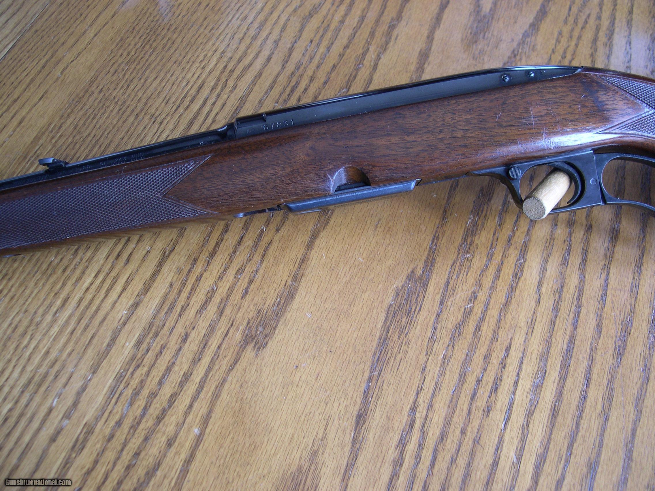 Description: This 88 is ioo% original with 99% Wood and 98% original blue, with Clover tang and Flat bottom magazine, made in 1958, Perfect Bore, correct flip up sight and sight hood, in more scarce 243 win. Hard to get better than this one. No modifications at all. SOLD |