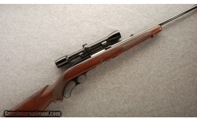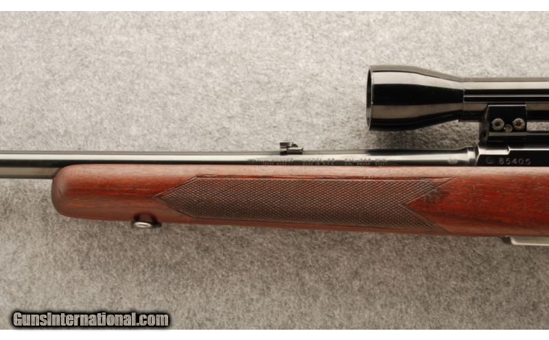 Description: SOLD Curio/Relic: Yes Manufacturer: 1959 Caliber Info: .358 Win. Metal Condition: Remains in good overall condition with light handling marks. Finish is thin-to-white along the edges and at high-contact areas such as the magazine and lever. Shows light pitting at the base of the lever, just forward of the grip cap. Wood Condition: Shows a few handling and use marks. Right-side fore end grip panel shows a couple of flat spots, the larger of which is the size of a dime. Also shows a 1 inch scuff on the bottom of the fore end. Most of the finish has worn off. Bore Condition: Clean with sharp lands. Barrels: 22 Stock Dimensions: 13 1/2" LOP Butt Pad: Correct factory plate, but not the gun's original plate. A replacement. Weight: 7 3/4 lb. Scoped Sights: Bushnell Custom - M 4 Power with Plex Reticle Item Location: Post Falls, ID |