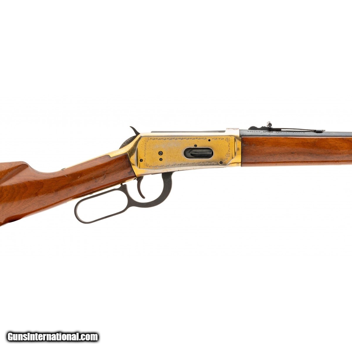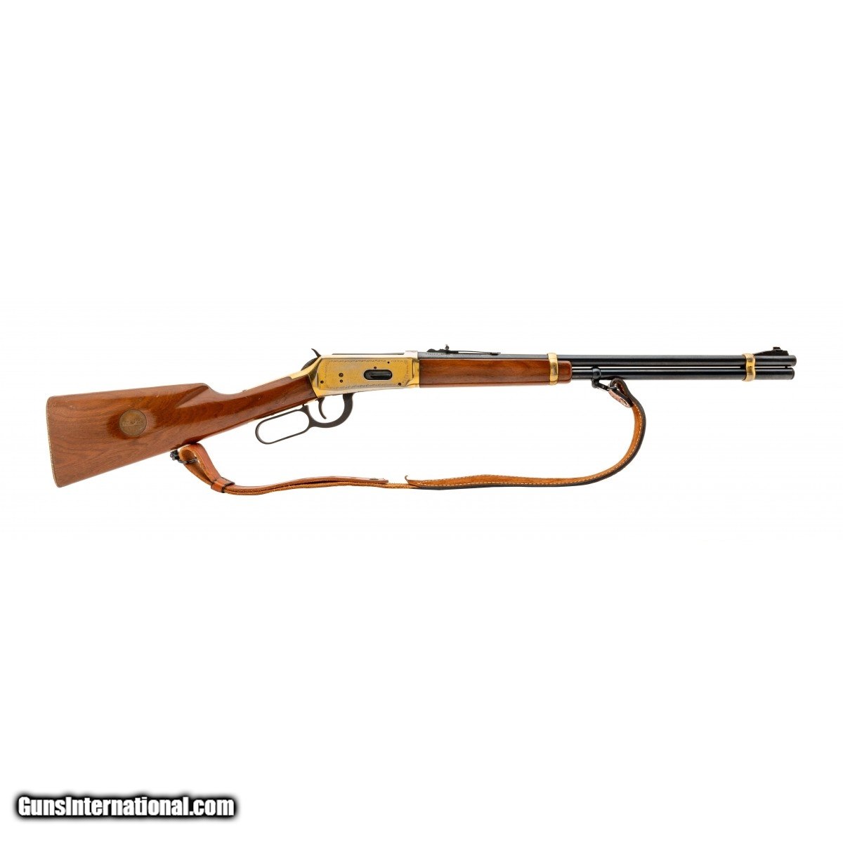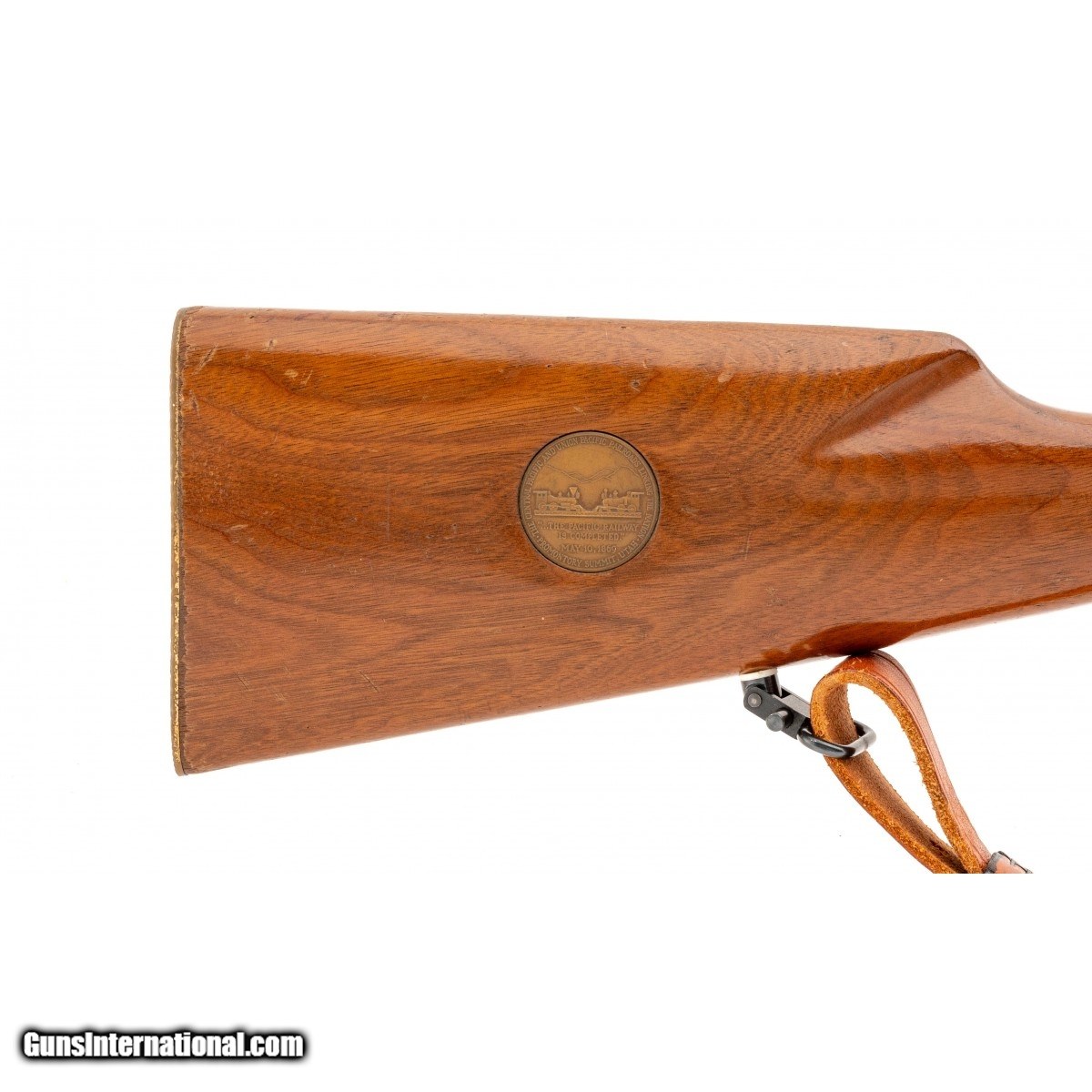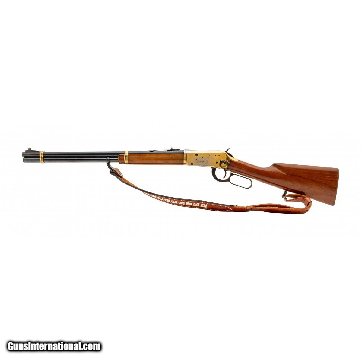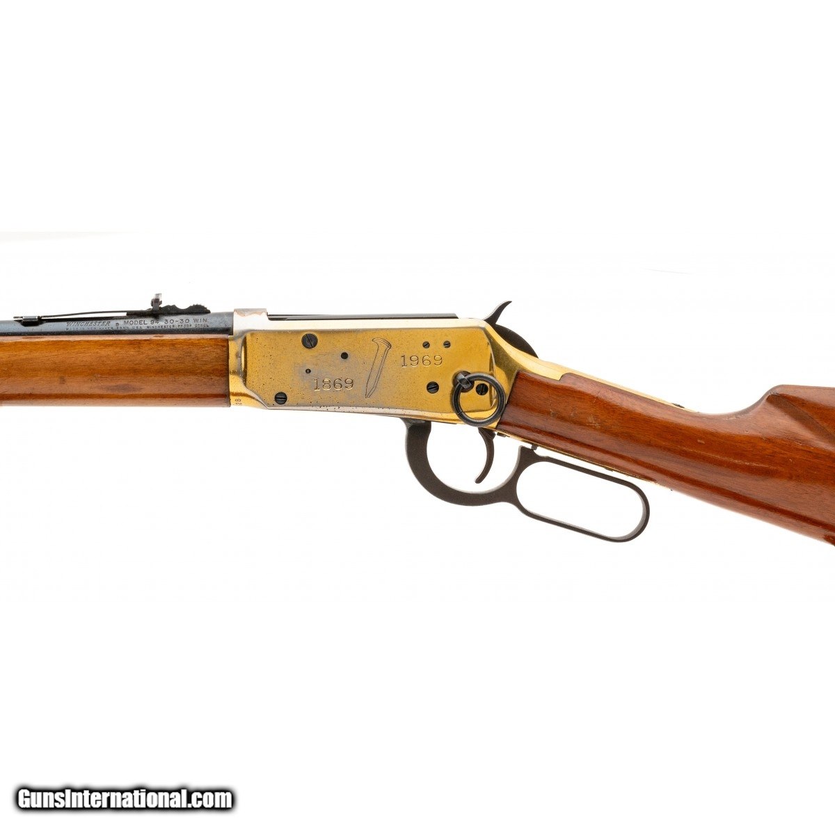 SN: GS37128 . Made in 1969. 30-30 Win with a 20"" barrel. Bore is in excellent condition. Lever action commemorative rifle. brass recvier and blued barrel are in good condition. wooden stock is good. Has saddle ring and 1869-1969 engraved on left side of recvier for 100 year anniversary of the golden spike completing the transcontinental railroad. Overall condition is good. Comes with sling. (Consignment)