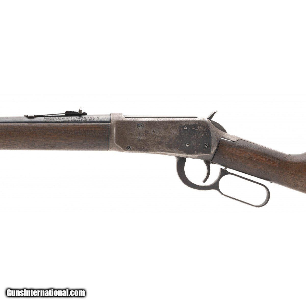 Texas Department of Corrections issued Winchester model 1894. The TDC officer on horseback overseeing prisoners who worked in fields planting and harvesting various vegetables and crops to be used at the nearby prison. The same thing applied to roadwork or trash collection. The TDC officer made sure the prisoners' were accounted for and work done correctly. Carbine was made in 1967 and has an aluminum strip nailed onto the right side of the butt stock. It is marked ""TDC 42538"". Carbine has wear from being in the field. A desirable issued carbine!
