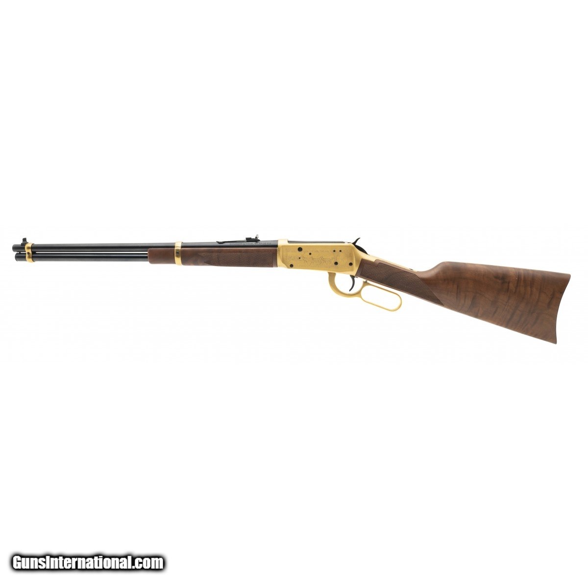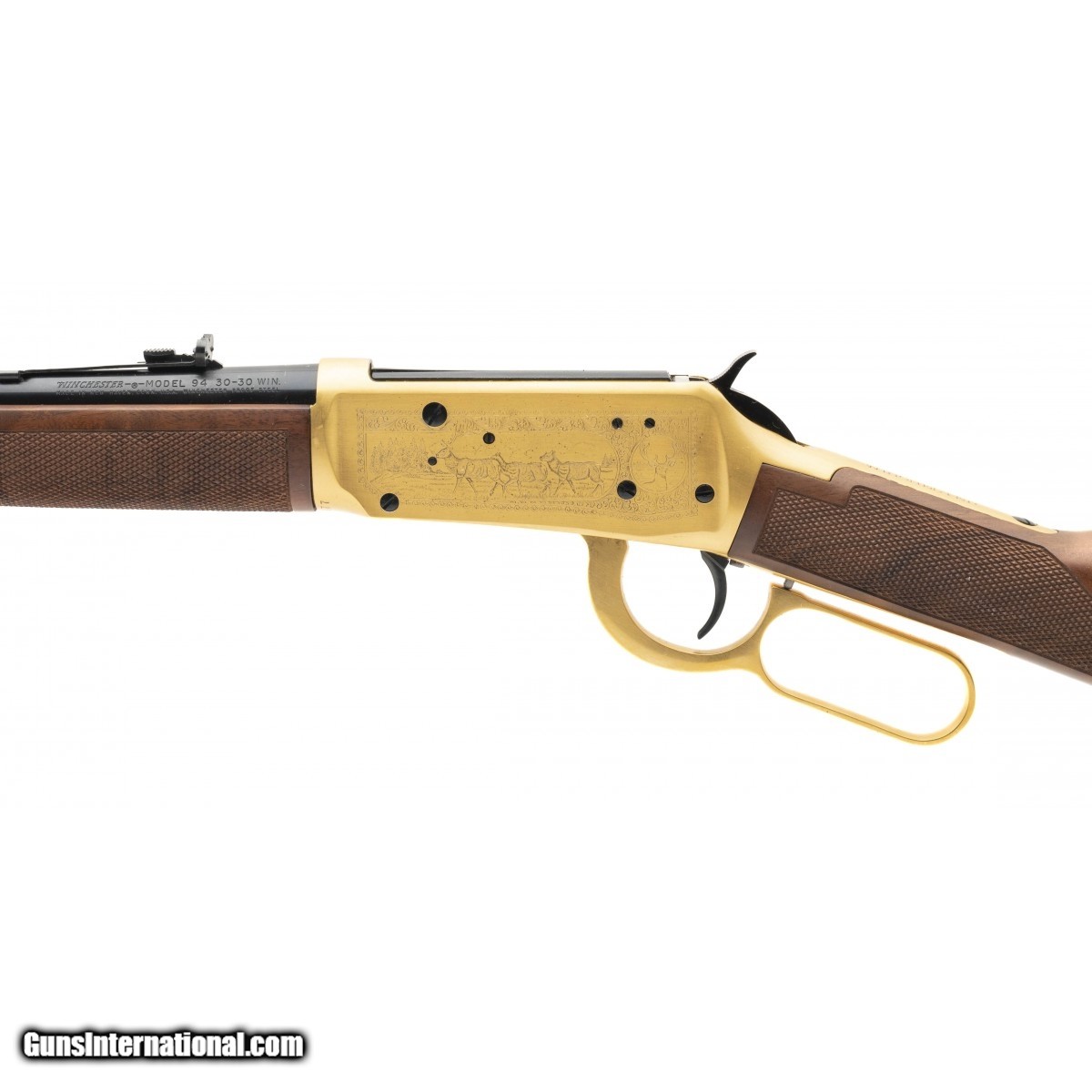 SN: AG04877. Manufactured in 1978. Chambered in .30-30 Winchester with a 20"" barrel, bore is excellent. Lever action rifle with blued barrel, adjustable rear sight, gold finished engraved receiver, lever, barrel bands and antler game commemorative medallion on right side of stock. Overall excellent condition. Comes with original box. (Consignment)