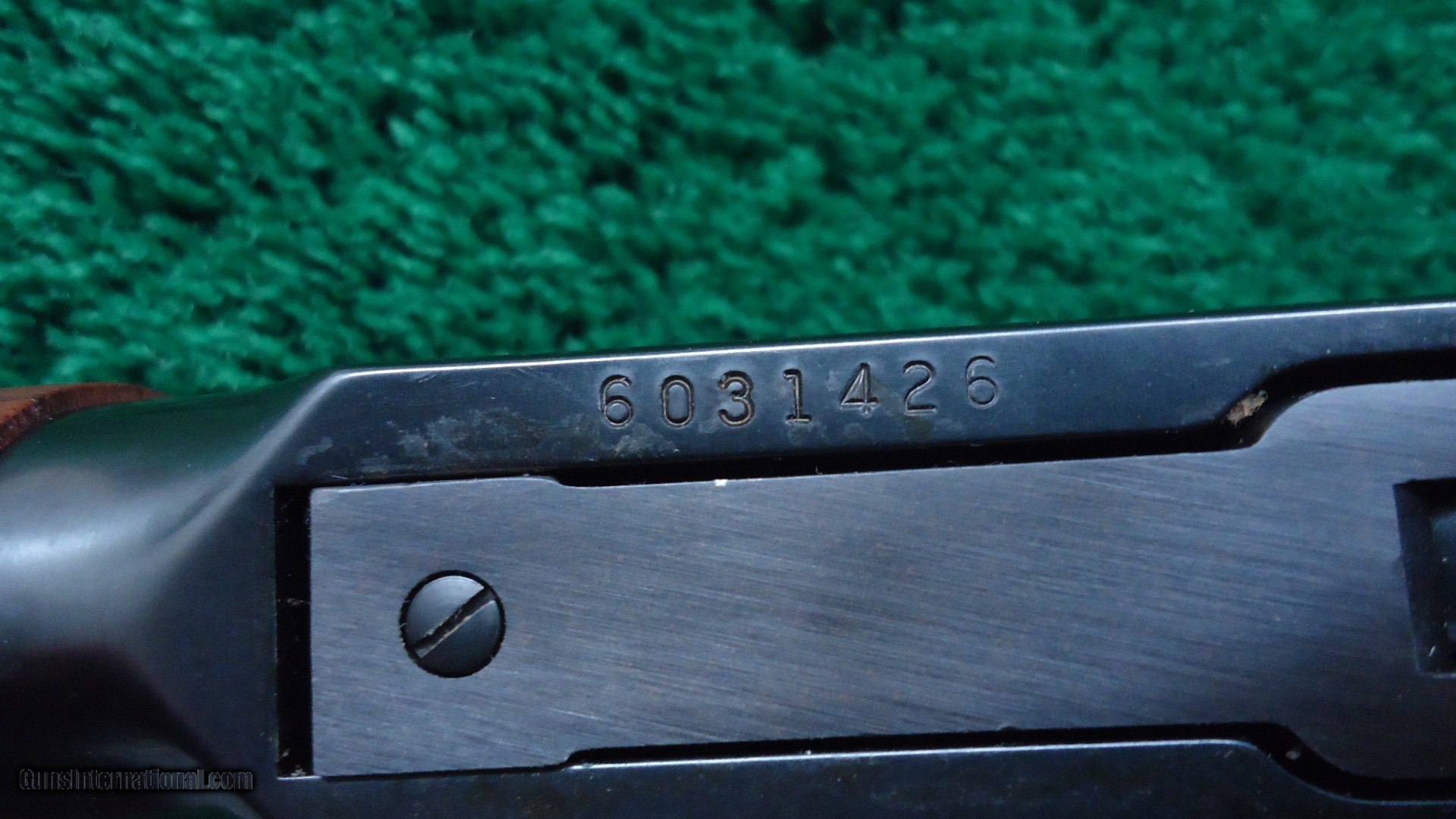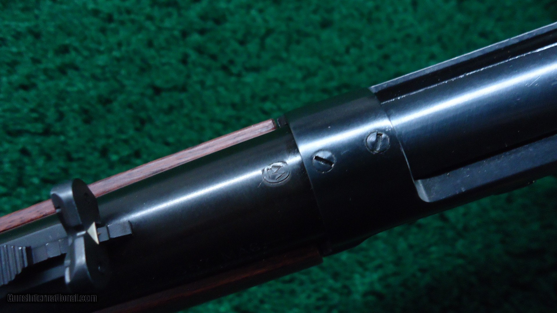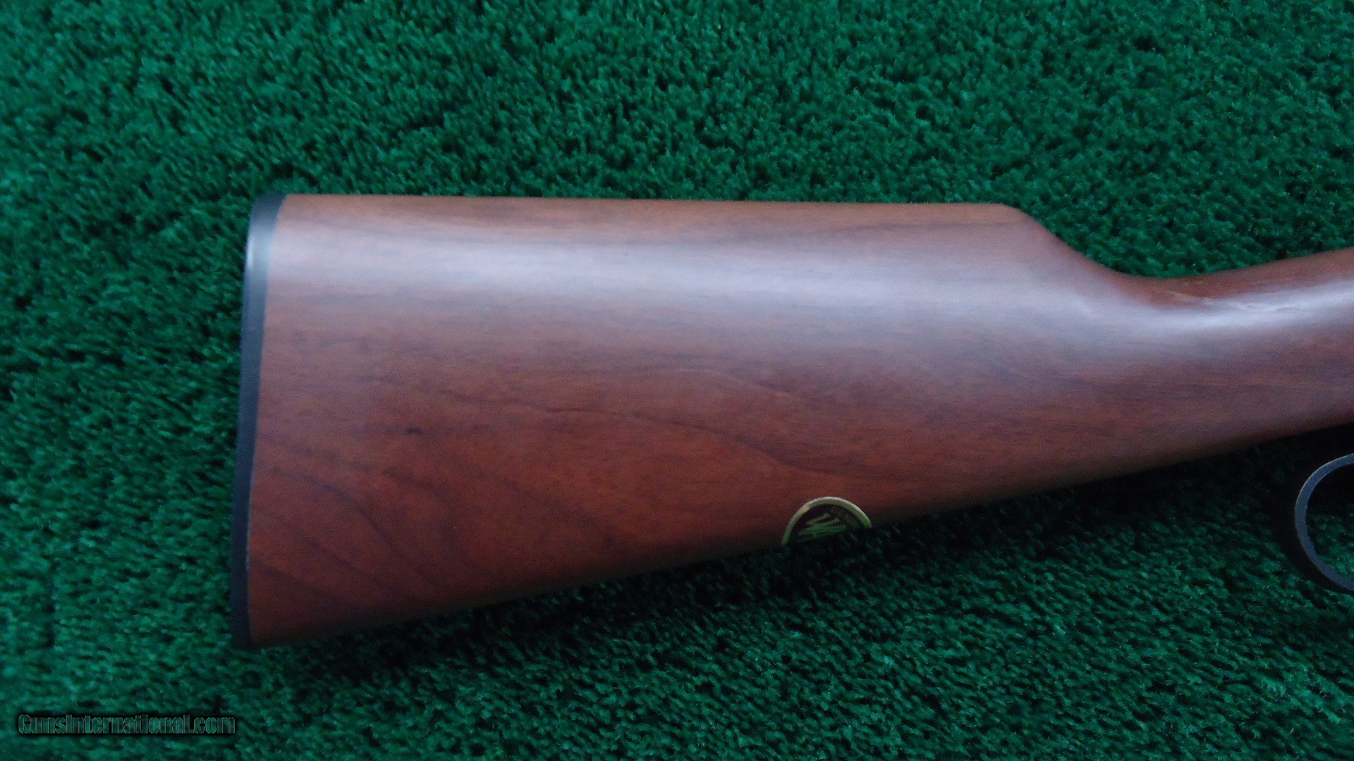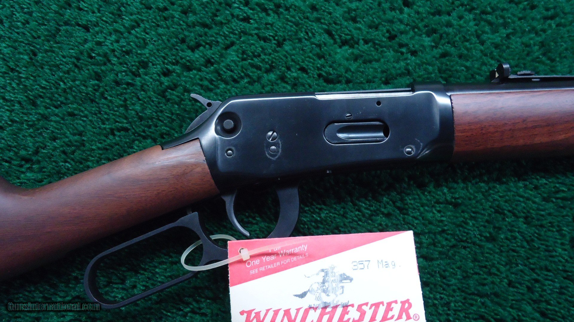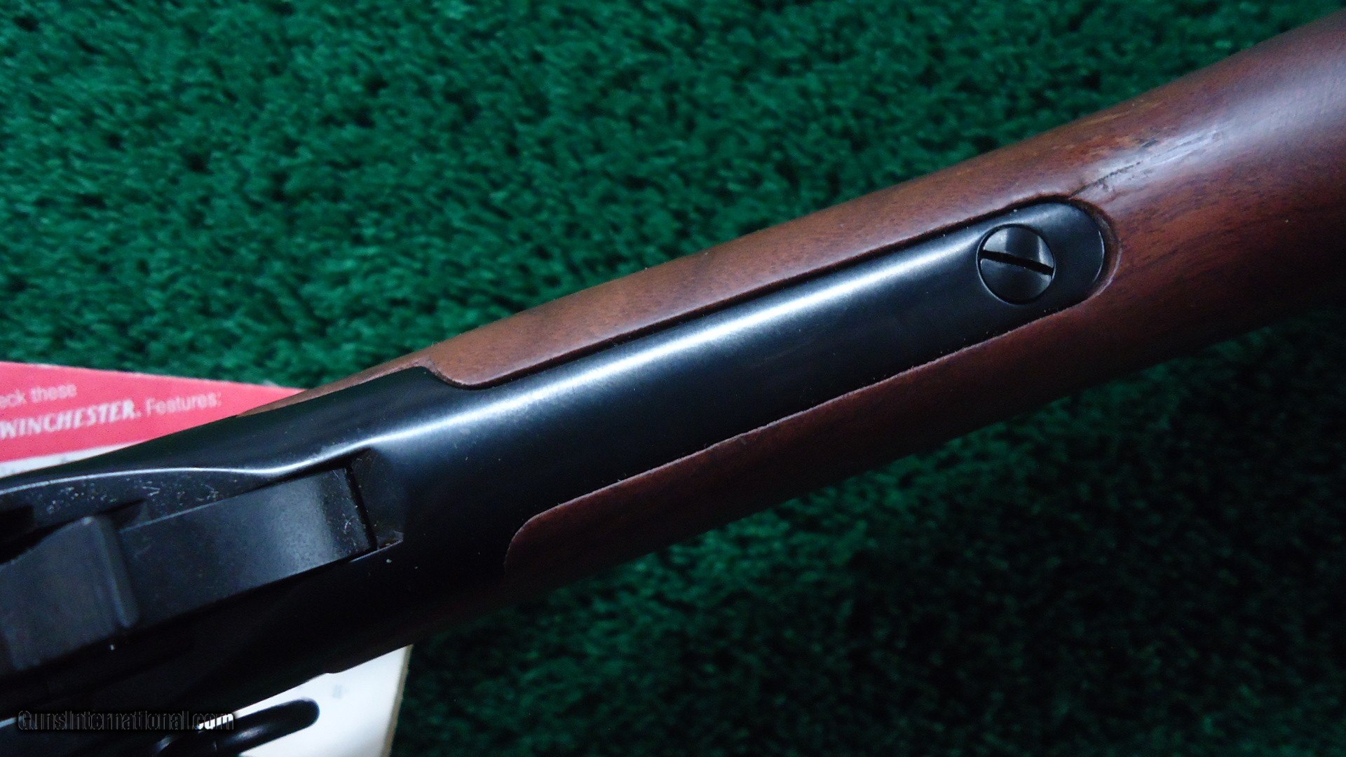 Description: 16 inch round barrel with blade front sight and buckhorn rear. Cross bolt safety model. Frame is factory drilled for a scope mount. Satin finish walnut forearm and stock with Winchester checkered plastic butt plate. Includes the original box with Owners Manual, Hang tag and has the “American Walnut” sticker still on the stock. Even includes the original hammer extension for use with scope. Overall metal surfaces appear new and with the exception of a repaired crack to the wrist of the stock, this gun is near As New condition and looks to be unfired. Leroy Merz Antique Firearms specializes in antique and vintage Winchesters and other fine American firearms. Since 1965 Mr. Merz has taken part in the world of firearms and has been a contributor to many well known reference books. We have hundreds of additional guns in every price range at our home online. Search for Merz Antiques in google. SOLD Rifle Caliber: .357 Magnum |