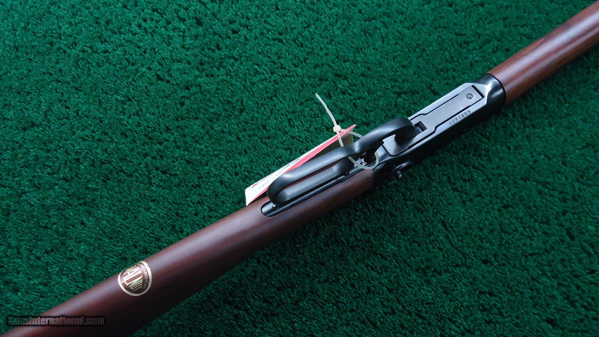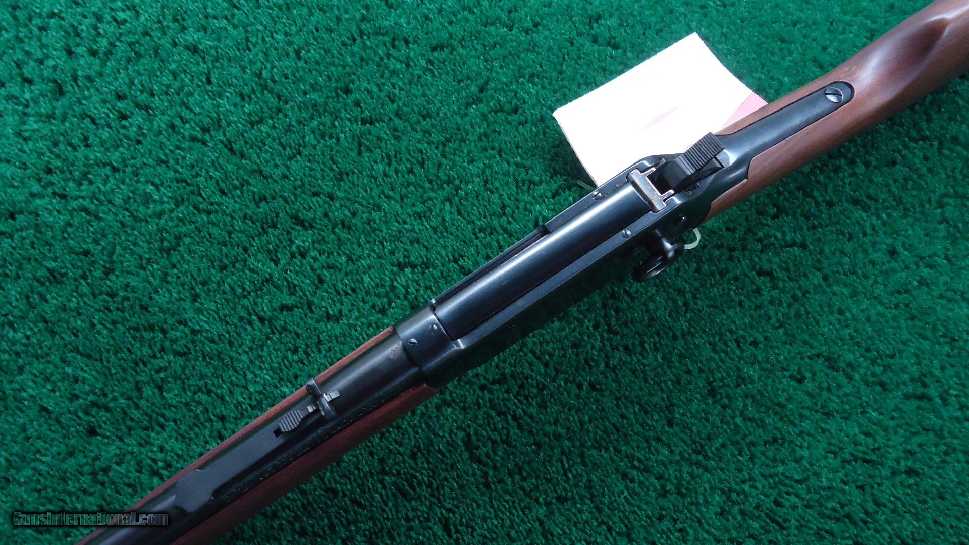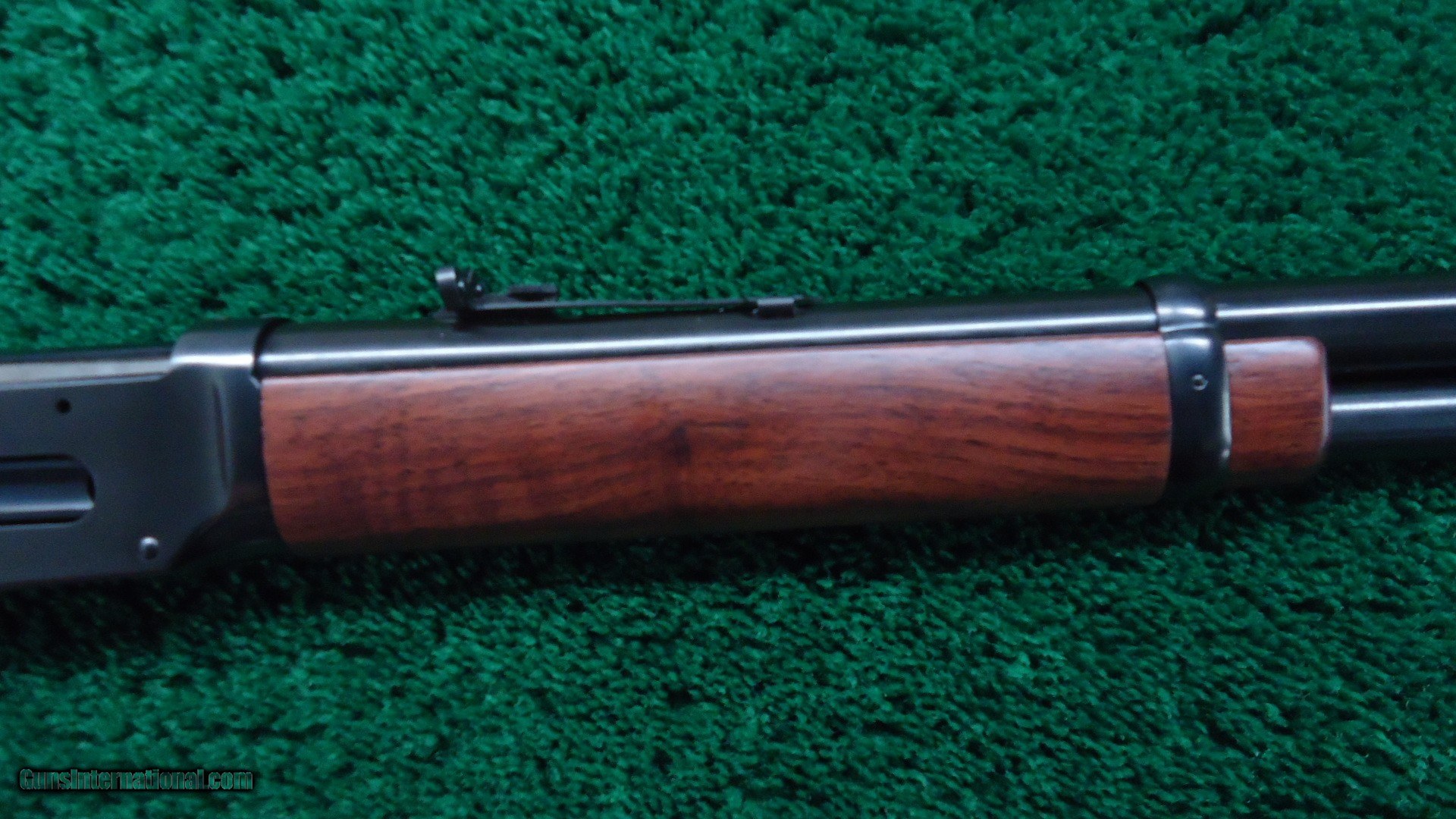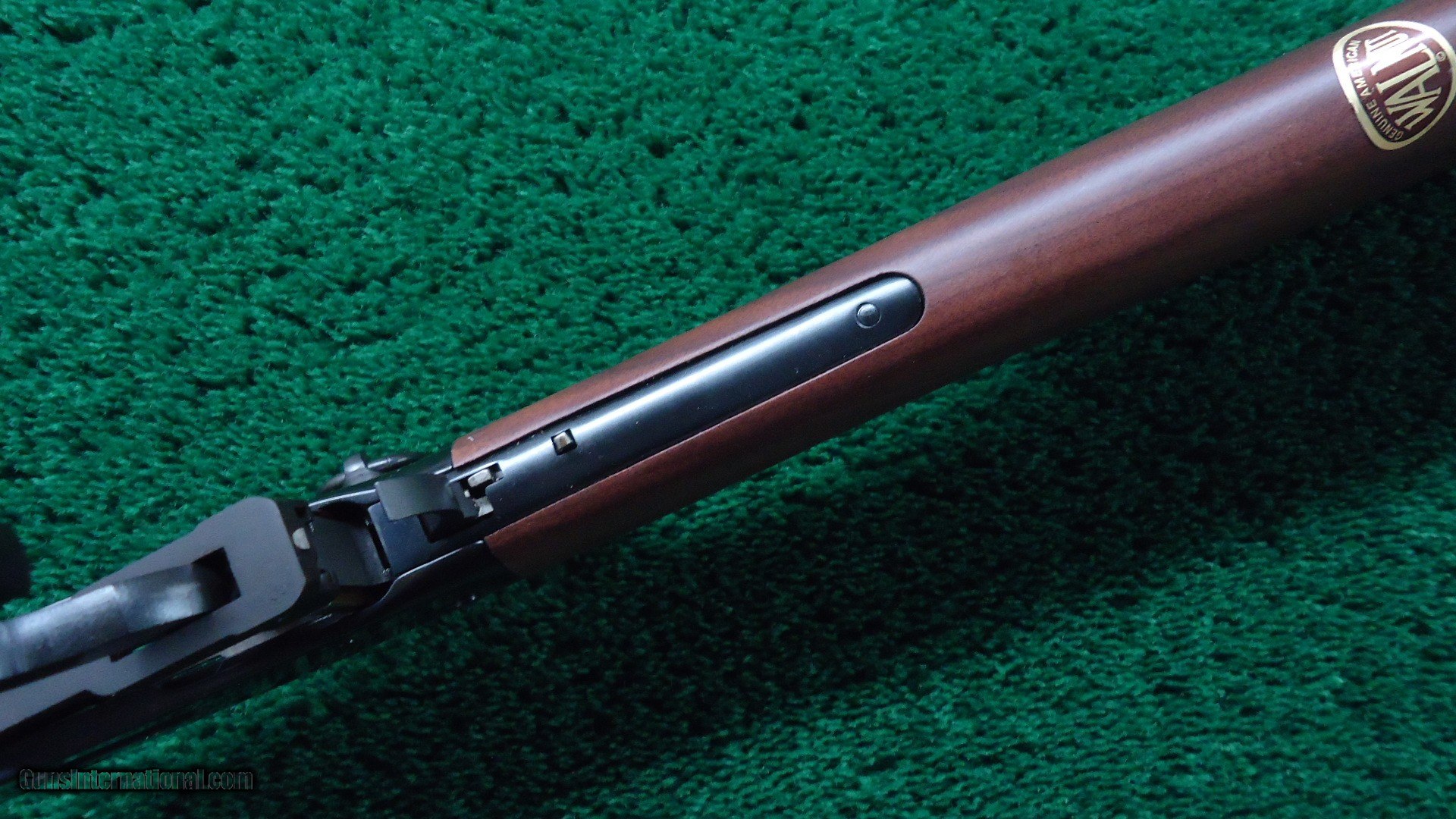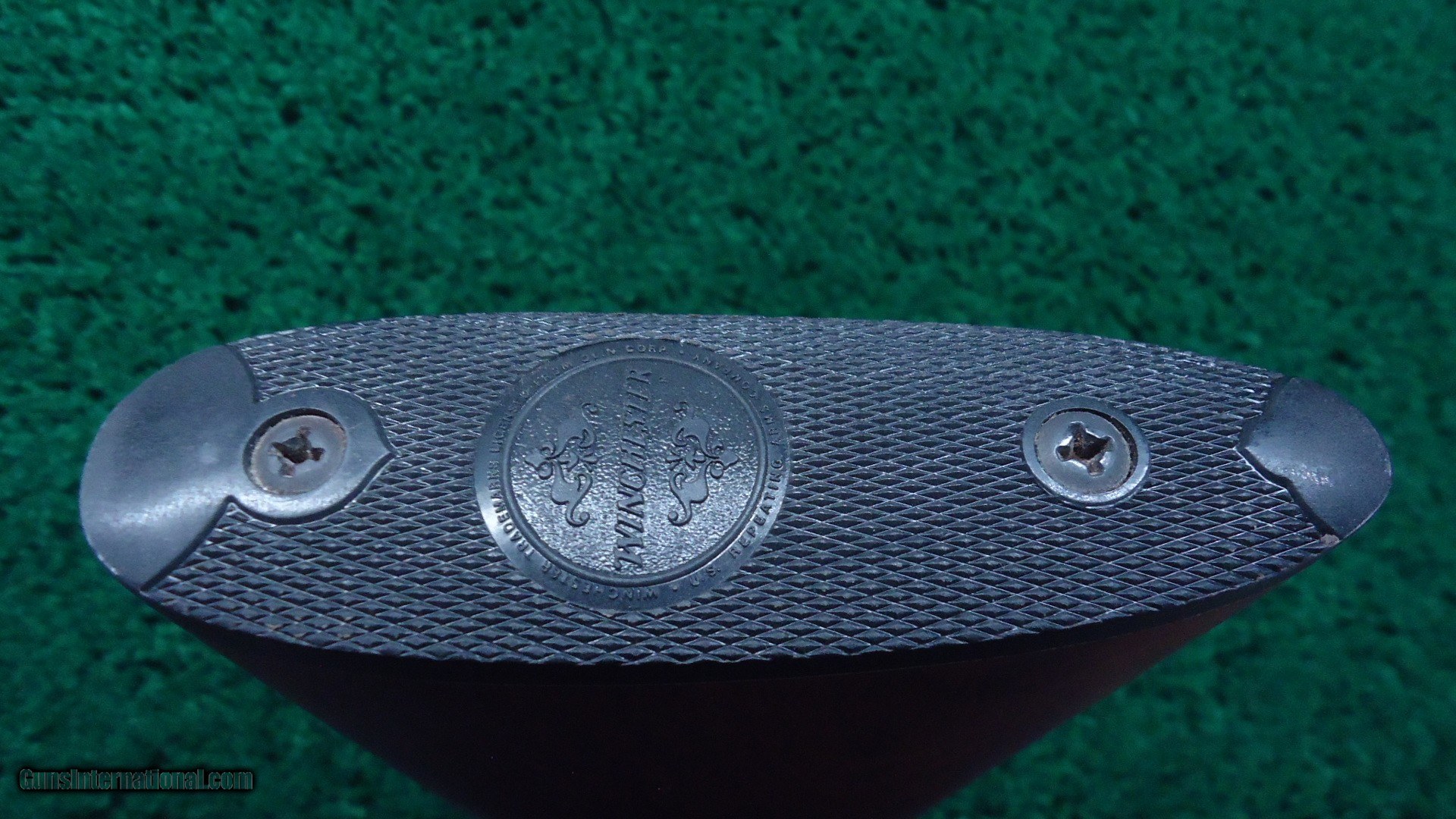 Description: 16 inch round barrel with blade front sight and buckhorn rear. Cross bolt safety model. Frame is factory drilled for a scope mount. Satin finish walnut forearm and stock with Winchester checkered plastic butt plate. Includes the original box with Owners Manual, Hang tag and has the “American Walnut” sticker still on the stock. Even includes the original hammer extension for use with scope. Overall metal surfaces appear new and with the exception of a repaired crack to the wrist of the stock, this gun is near As New condition and looks to be unfired. Leroy Merz Antique Firearms specializes in antique and vintage Winchesters and other fine American firearms. Since 1965 Mr. Merz has taken part in the world of firearms and has been a contributor to many well known reference books. We have hundreds of additional guns in every price range at our home online. Search for Merz Antiques in google. SOLD Rifle Caliber: .357 Magnum |