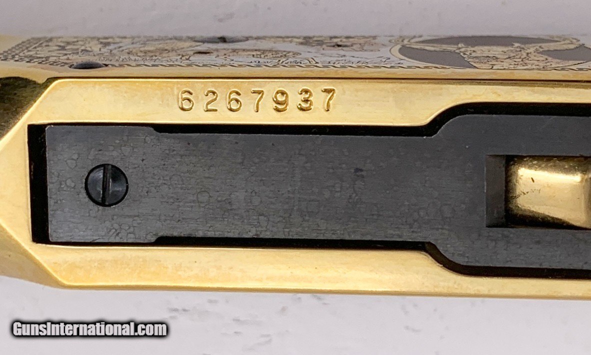 Description: AMERICA REMEMBERS "THE DEER HUNTER TRIBUTE" WINCHESTER MODEL 94AE LEVER ACTION RIFLE CHAMBERED IN THE .30-30 WINCHESTER CARTRIDGE! - GOLD AND DEER SCENE ENGRAVED FINISH ON THE RECEIVER - 24 KARAT GOLD PLATED LEVER BARREL BANDS, AND FRONT & REAR SIGHTS - 20" BLUED ROUND BARREL AND MAGAZINE TUBE - "THE DEER HUNTER TRIBUTE" GOLD SCRIPT ON THE BARREL - SMOOTH WOOD STOCK AND FORE END - THIS RIFLE IS NUMBER 250 OF 300 TOTAL TRIBUTE RIFLES MADE! - SHIPS AS PHOTOED WITH THE CERTIFICATE OF AUTHENTICITY FROM AMERICA REMEMBERS AND OTHER PAPERWORK - WE ACCEPT C&R LICENSES FOR ALL ITEMS OVER 50 YEARS OLD….We will NOT ship to California unless you have spoken to an FFL and they have agreed to accept. This is a must… FIXED HANDGUN SHIPPING COST - $40 (TO LOWER 48) FIXED LONG GUN SHIPPING COST - $50 (TO LOWER 48) RETURN POLICY: All firearms EXCEPT ANTIQUE FIREARMS come with a 3-day ON-FIRING, NO DIS-ASSEMBLY - (REMOVING PARTS, MOUNTING OPTICS, CLEANING, DETAIL STRIPPING) inspection / return privilege to cover any issue that was NOT noted in the written description -OR- shown in the photos of the item . Inspection is based on a visual review of the gun to confirm the gun is in the condition stated. The inspection period begins at time of delivery to your dealer. It is your responsibility to inspect the gun in this time frame and inform JCB INDUSTRIES., by phone or e-mail, of any such issue. IT IS REQUIRED TO get ahold of us before returning a firearm. In the case of a return, buyer pays all shipping. Please ask any questions you may have prior to purchasing. Antique guns are sold as/is and are in no means under any warranty or guarantee to function. Have ALL guns checked by a qualified gunsmith before attempting to fire. Once the gun has been transferred on a 4473 there WILL BE NO RETURNS, PERIOD. ***READ THE BELOW INSTRUCTIONS OR FOLLOW UP WITH YOUR EMAIL ONCE WON*** 1. CONTACT YOUR FFL 2. Have them email a copy of their FFL To: JCB_LLCICLOUD....( 3. Credit cards can be processed (for a 3% fee) by calling us Mon-Friday 9-3 Central (715-371-0898) 4. Forms of payments accepted: USPS Money Order, Cashier’s Check….Personal Check with up to 7 day clearance…ALL CHECKS MUST BE MADE OUT TO JCB INDUSTRIES, LLC 5. Once FFL & Payment have been received, We will provide tracking direct from PIRATESHIP. Also check spam folder Thank You For Looking SOLD Rifle Caliber: .30-30 Winchester Manufacturer: WINCHESTER Model: 94AE DEER HUNTER TRIBUTE Serial Number: 6267937 Barrel Length: 20 Condition: EXCELLENT Bore Condition: EXCELLENT |