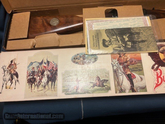 Description: Winchester Model 94, 30/30 Winchester Buffalo Bill Commemorative (1968) Saddle Ring Carbine has never been fired. It's been a wall decoration for years. Rifle will come in factory box with sleeve and certificates. Pristine condition as can be seen in pictures. Also included is my Jim Bowie Legend Buffalo Bill Commemorative Bowie Knife with factory box, display case and certificate. They have been together for a long time and will stay that way. Sorry will not separete. Both looking for a good home. FFL REQUIRED. Shipping $65. Payment by USPS Money Order, Cashiers Check, VENMO or ZELLE. ***PRIVATE SELLER*** NO CALIFORNIA SHIPPING*** SOLD Rifle Caliber: .30-30 Winchester Manufacturer: Winchester Model: 04 Condition: Excellent Metal Condition: Excellent Wood Condition: EXCELLENT Bore Condition: Excellent Manufacture Date: 1968 |