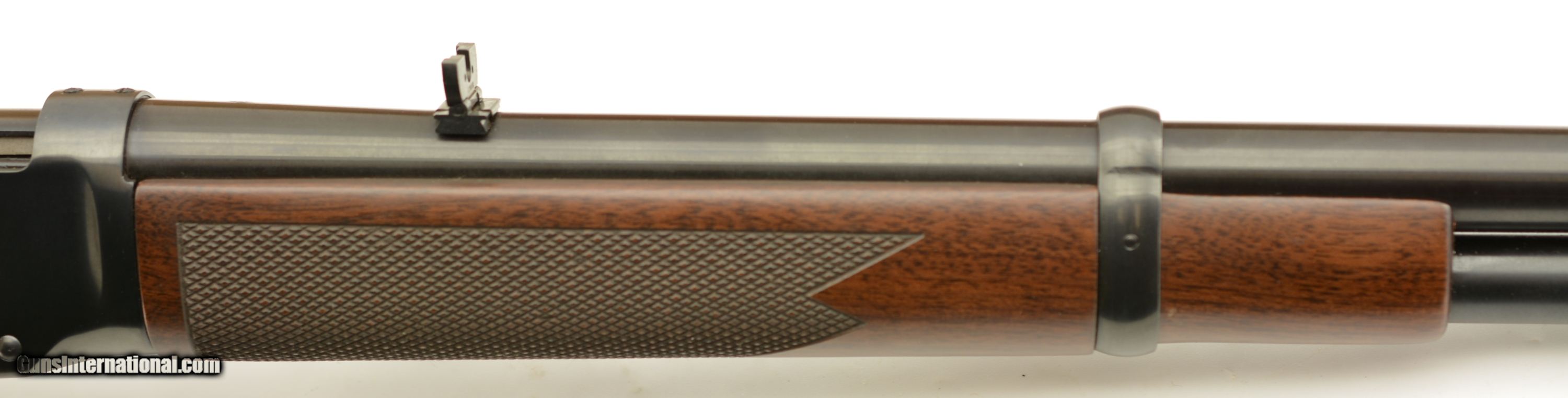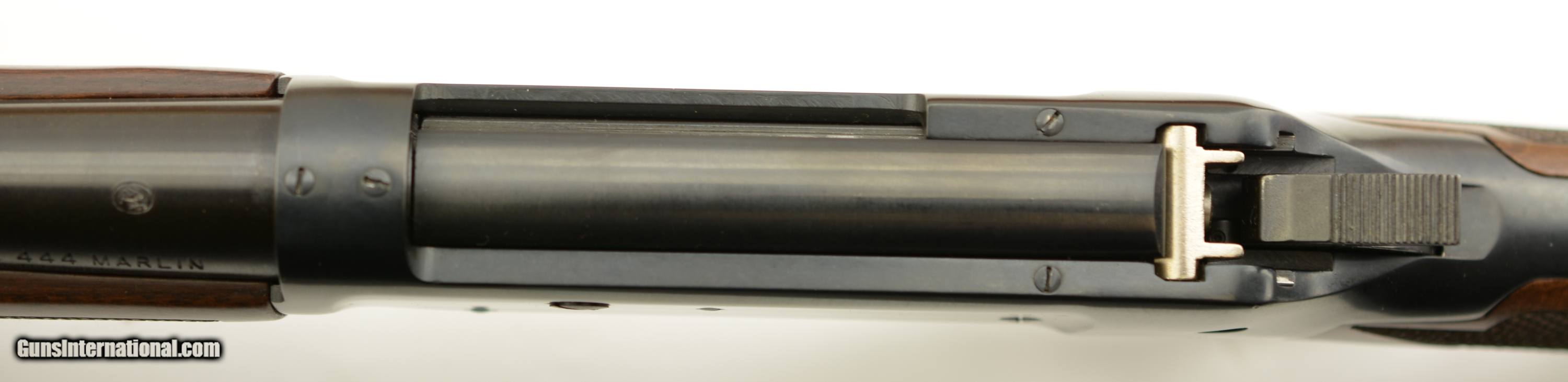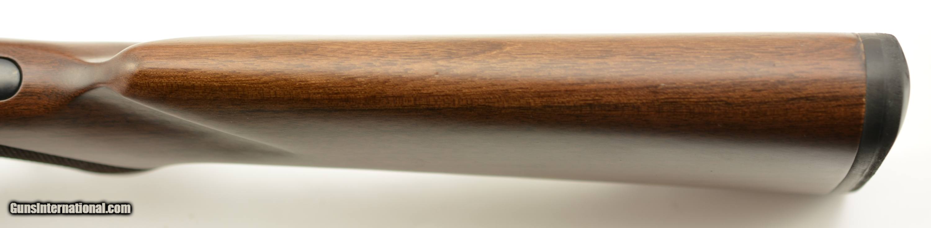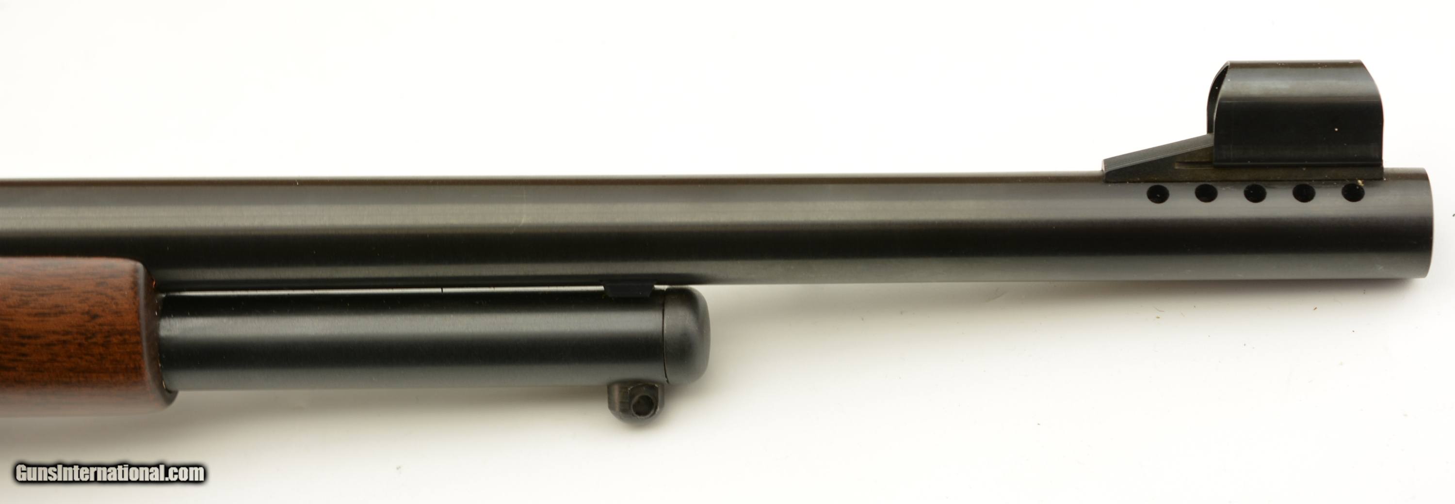 Description: Serial #6436694, .444 Marlin, 18 inch ported barrel with a bright, excellent bore. This is the Model 94 AE Big Bore Timber Carbine manufactured by Winchester featuring a 5 round, 2/3 magazine, cross bolt safety, checkered semi-pistol grip stock and forearm with hooded front sight and flip up rear with the receiver factory drilled and tapped for optics. The gun is in excellent condition retaining virtually all, 99% plus original blue finish on the metal surfaces with very minor handling marks. The walnut stock and forearm are likewise excellent. It comes in the original cardboard box with paperwork, lock and original Winchester hammer extension for use with scopes. FFL SOLD Manufacturer: Winchester Model: 94AE Caliber Info: .444 Gauge Info: .444 |