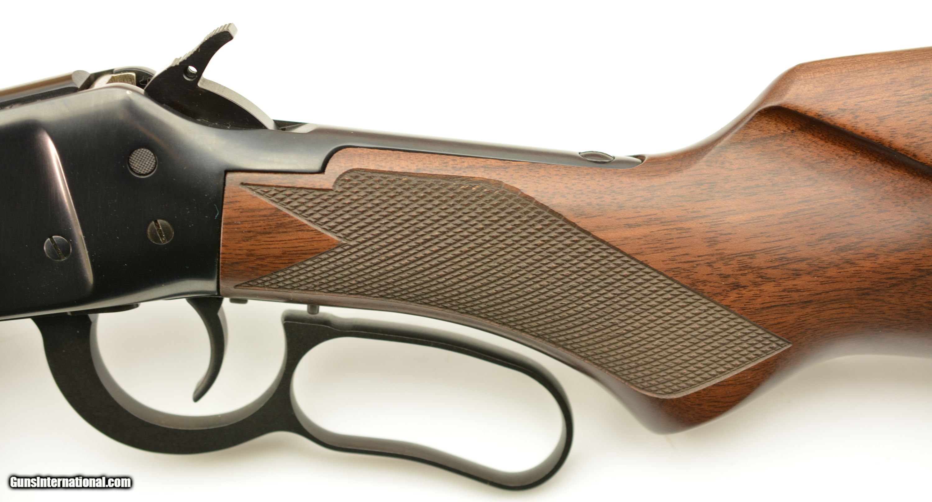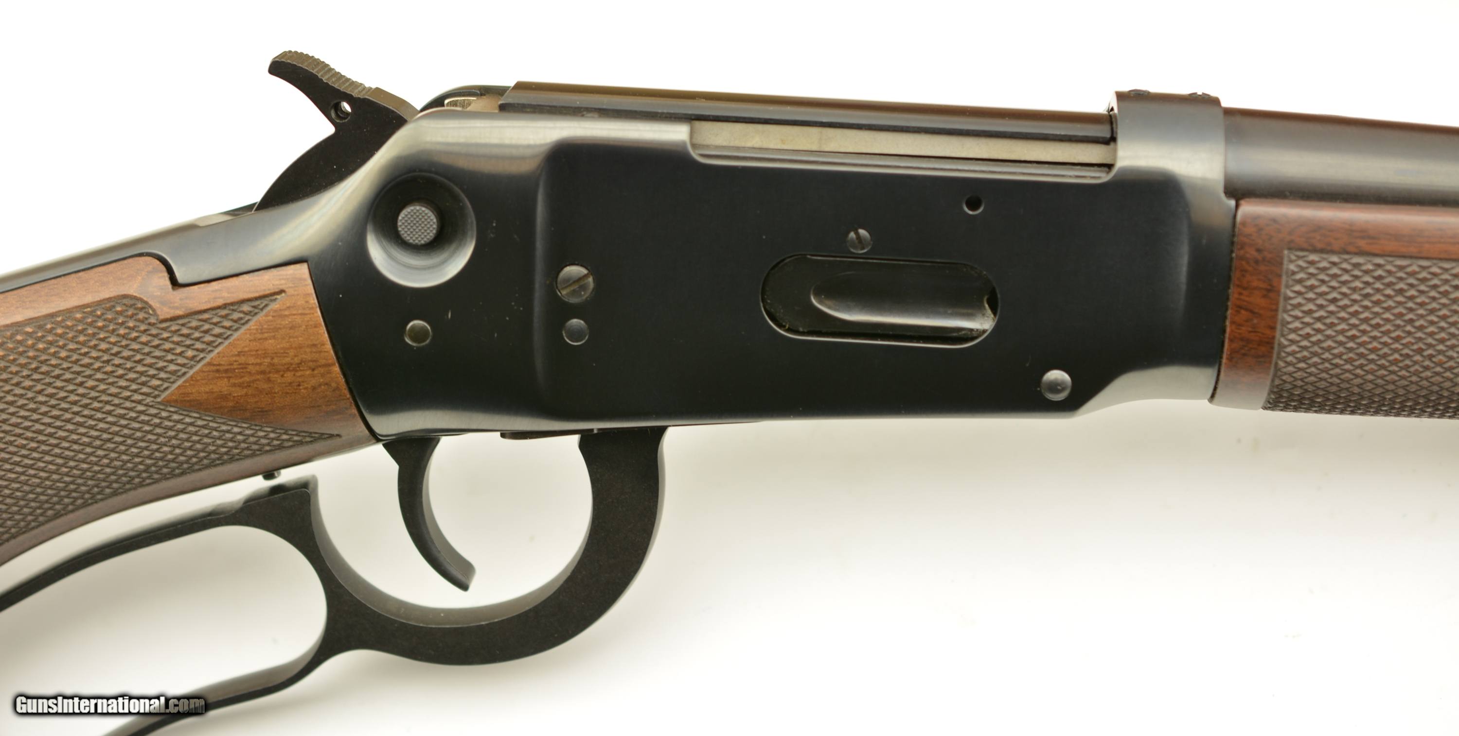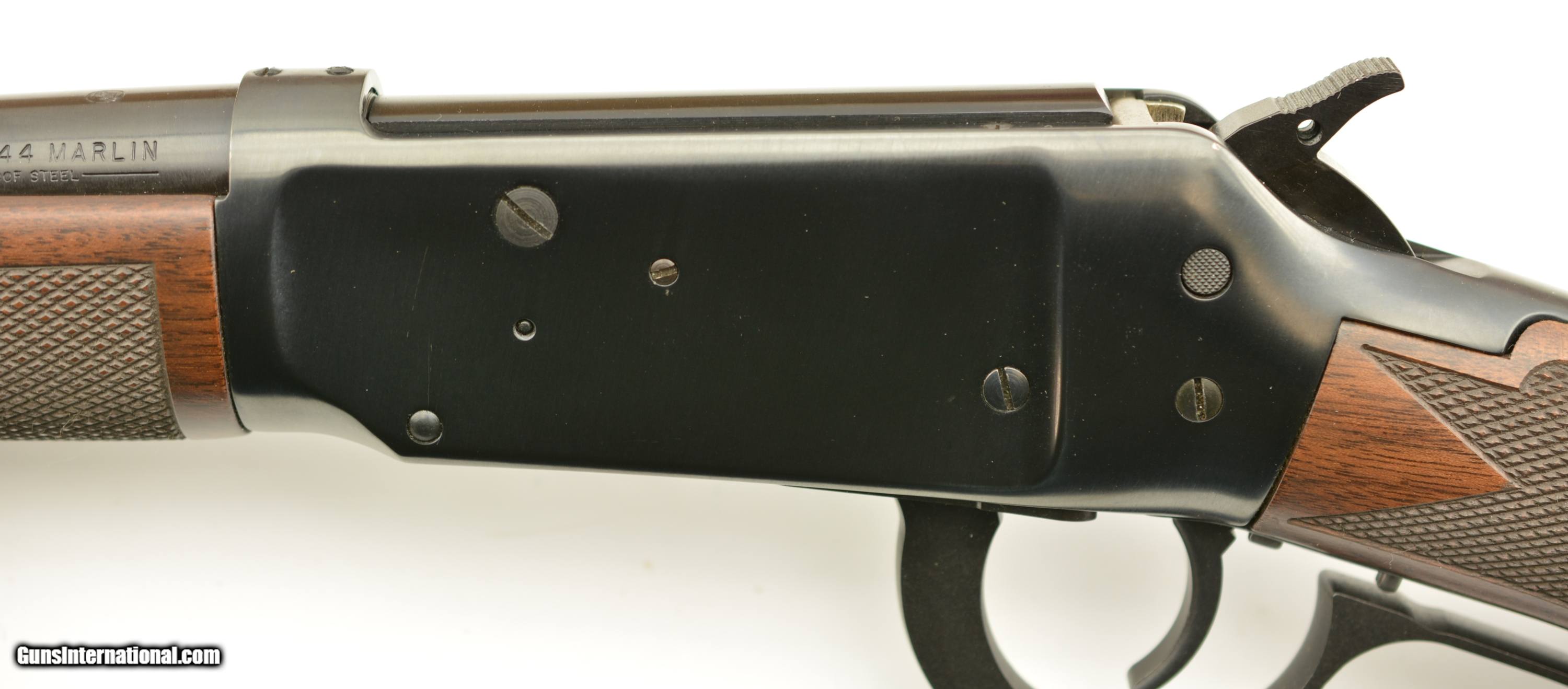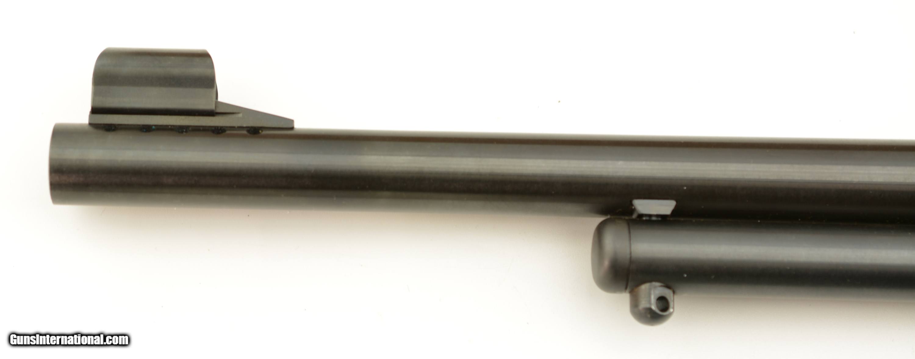 Description: Serial #6436694, .444 Marlin, 18 inch ported barrel with a bright, excellent bore. This is the Model 94 AE Big Bore Timber Carbine manufactured by Winchester featuring a 5 round, 2/3 magazine, cross bolt safety, checkered semi-pistol grip stock and forearm with hooded front sight and flip up rear with the receiver factory drilled and tapped for optics. The gun is in excellent condition retaining virtually all, 99% plus original blue finish on the metal surfaces with very minor handling marks. The walnut stock and forearm are likewise excellent. It comes in the original cardboard box with paperwork, lock and original Winchester hammer extension for use with scopes. FFL SOLD Manufacturer: Winchester Model: 94AE Caliber Info: .444 Gauge Info: .444 |