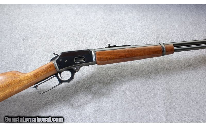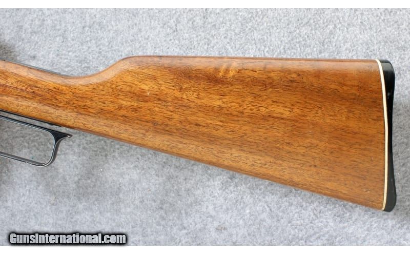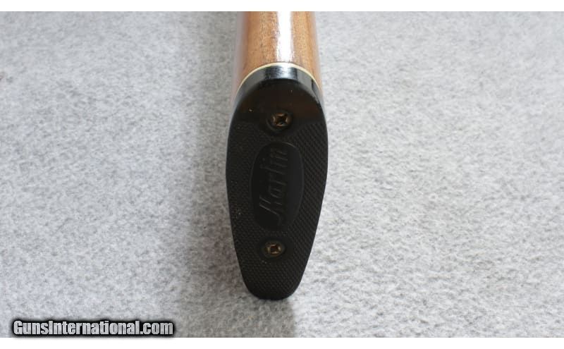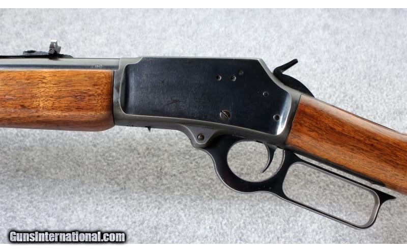 Description: Reminiscent of the sporting lever-action rifles of an earlier era, this elegant carbine features Micro-groove rifling, a walnut straight-grip stock with a Marlin black plastic plate. Sights include an adjustable semi-buckhorn folding rear and front sight with brass bead. The solid-top receiver is tapped for a scope mount. Manufactured 1982. .357 Magnum SOLD Metal Condition: Good with wear on the sharp edges and one the barrel bands Wood Condition: Very good with scratches and dents Bore Condition: "Very good, sharp and bright Barrels: 18.5 inch barrel with JM proof stamp Stock Dimensions: 13 1/4 inch LOP Butt Pad: Marlin black plate Weight: 6 lbs. Sights: Buckhorn rear sight with bead front Item Location: Lehi, UT |