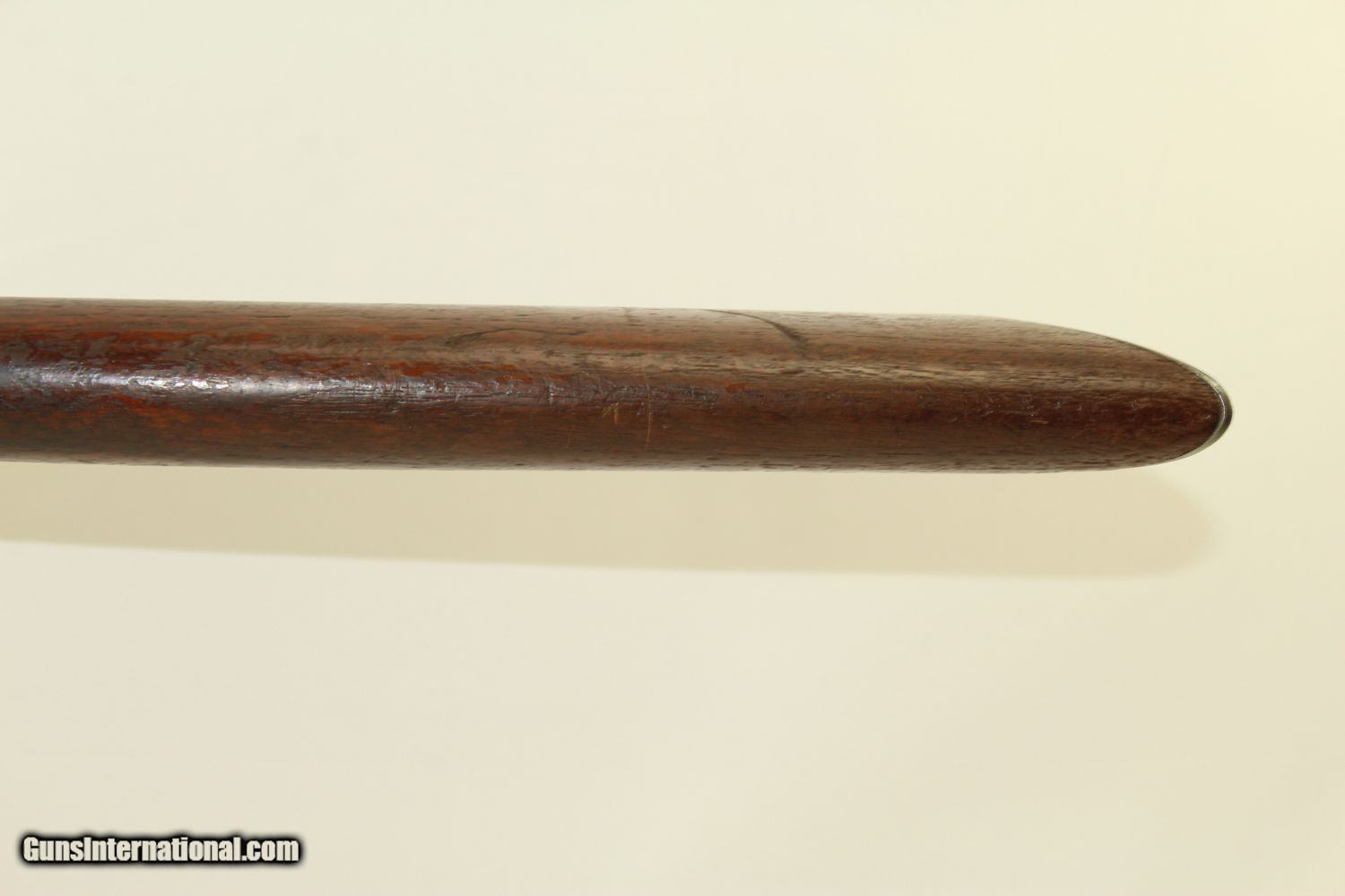 Description: NOTCHED 1908 WINCHESTER 1894 .32 W.S. Rifle C&R Classic Lever Action Rifle in Scarce .32 Winchester Special! Here we present a Winchester Model 1894 Lever Action Rifle, made in 1908 in New Haven, Connecticut. The credit for the design of such a prolific firearm again lies with John Moses Browning, who lent his extensive design talents to a large number of weapon types throughout his career. The Model 1894 was the first Winchester rifle made for use with the new technology of smokeless powder and was developed as a hunting rifle. Over 7.5 million were produced from 1894 until 2006. While various cartridges were supported throughout the run of the gun, the .30-30 Winchester became its staple. In practical use, the Model 1894 became a favorite for general shooters and hunters alike. To this day, it remains a deer hunting favorite, and, in all likelihood, more deer have been taken with the 1894 than any other. The .32 Winchester Special (or .32 WS) is a rimmed cartridge created in October 1901 for use in the Winchester Model 94 lever-action rifle. It is similar in name but unrelated to the .32-20 Winchester cartridge (which is also known as .32 WCF). This cartridge is based on the .30-30 Winchester cartridge of 1895, but differs from the .30-30 in bullet diameter. More significantly, Winchester decreased the rate of rifling twist in their Model 94 rifle, from 1:12 when chambered for the .30-30 to 1:16 when chambered for the .32 Winchester Special. Winchester used the slower twist to reduce fouling retention when creating a new cartridge for sportsmen who wanted to reload their own ammunition using black powder and cast bullets. The overall condition is very good or better. 80% of the original blue finish remains. The markings are clear. The walnut stock is in very good shape with good character. The right side of the forearm has a series of 23 individual notches carved in. The bore is bright with strong rifling. The action is excellent. This is one you don’t want to miss out on, especially with deer season upon us! This firearm is classified as a Curio & Relic. Barrel is 26 inches. Caliber: .32 Winchester Special Overall condition as seen in photos. Very Fast. Very Safe. FREE SHIPPING. Will need to be sent to your local FFL. This firearm is classified as a Curio & Relic. Guaranteed AUTHENTIC & Includes CERTIFICATE OF AUTHENTICITY. ancestryguns $2150 #190893 SOLD Curio/Relic: Yes |