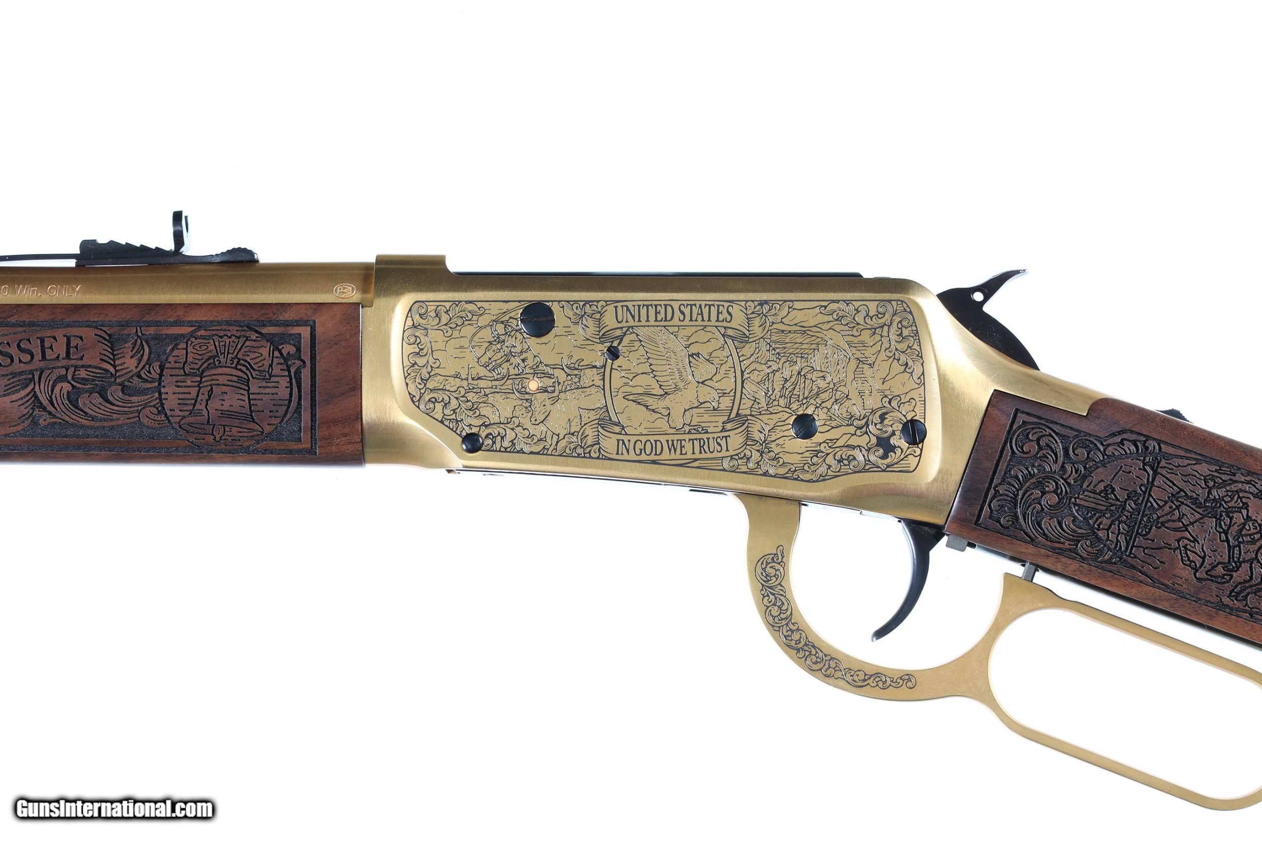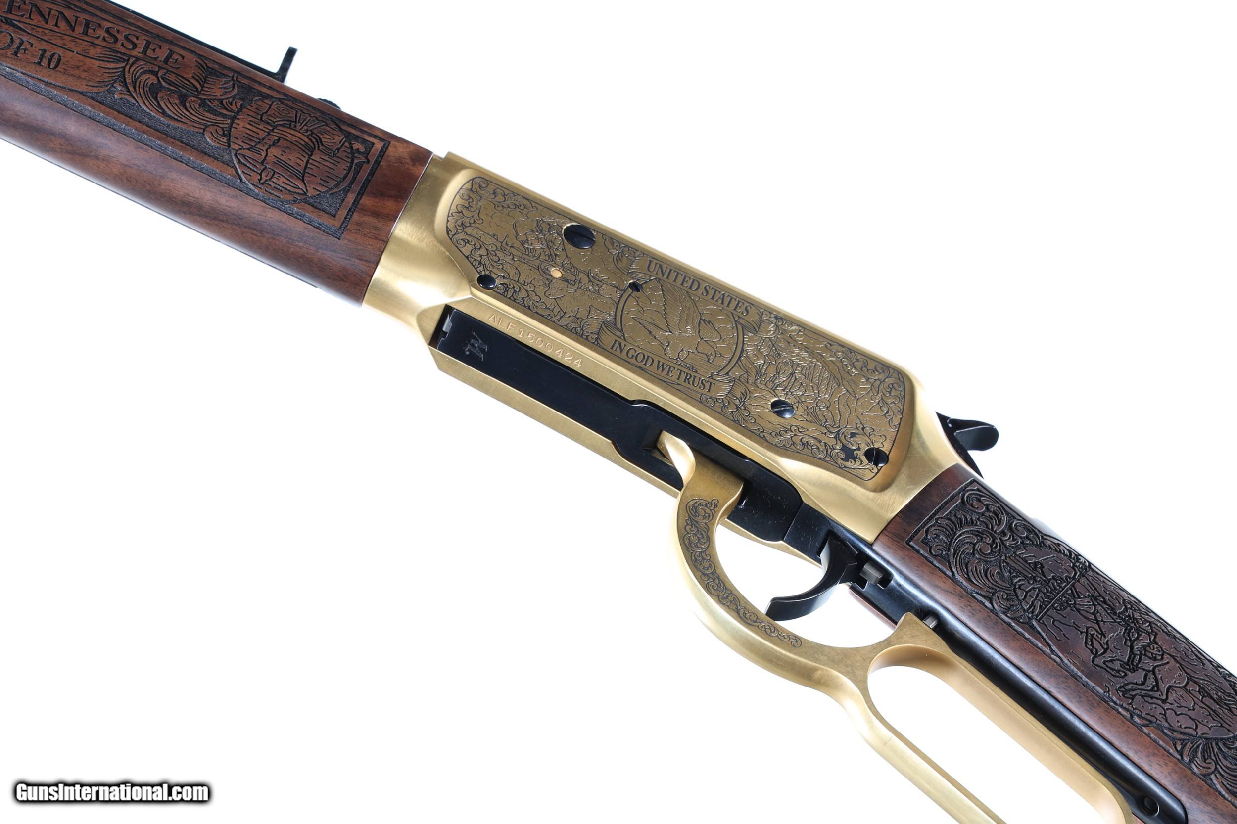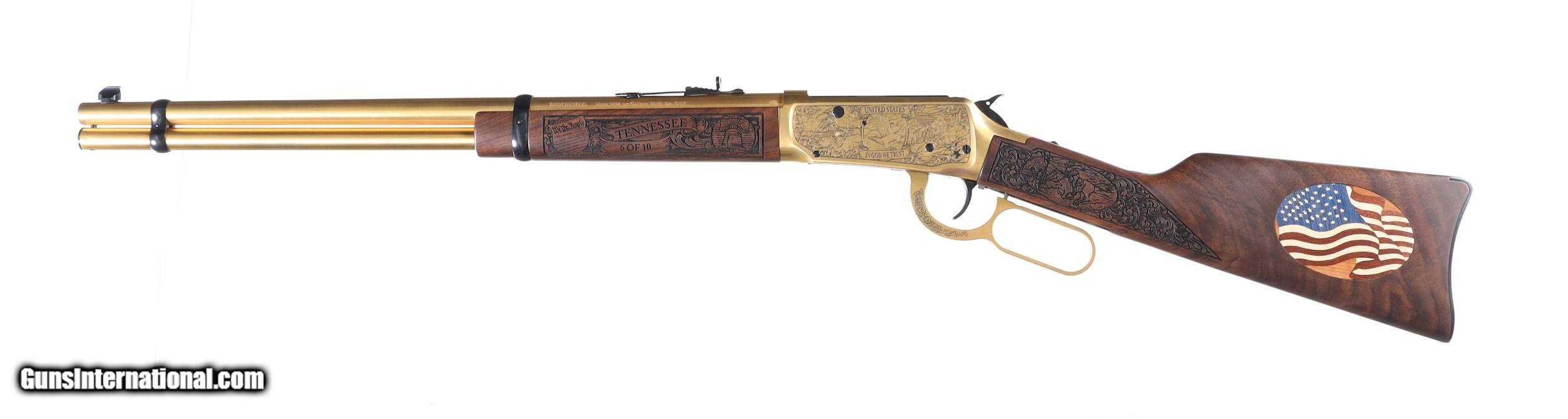 Description: American Patriot Commemorative in like new overall condition. This carbine was commissioned by American Legacy Firearms. There were 10 created for each state of the union, this one is for Tennessee. With matching box (has factory end label), papers, and a lock. • Free Shipping, No Credit Card Fees. • Lay-a-way available for this firearm. • 1/3 Down, a 1/3 in 30 Days 1/3 in 60 Days. SOLD Manufacturer: Winchester Model: 1894 American Patriot Serial Number: ALF1500424 Barrel Length: 20 |