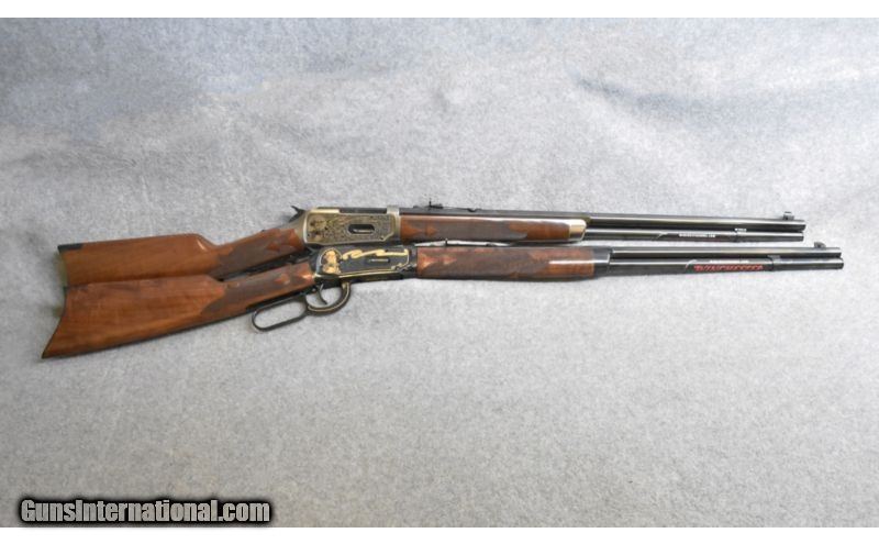Description: Winchester 1894 Oliver Winchester 200th Anniversary 1810-2010. Only made in 2010. Matching set of Custom and High Grade serial numbers. Only 500 manufactured in sets.Sold as set SOLD Manufacturer: 2010 Caliber Info: .30-30 Winchester Metal Condition: Excellent, like new Wood Condition: Excellent, like new Bore Condition: Clean with bright lands Barrels: 24 inch half-octagon, half-round Triggers: Single grooved Stock: Checkered Grade IV/V walnut stock with high gloss finish Stock Dimensions: 13 1/4 inch LOP Fore End: Checkered straight walnut Butt Pad: Blued metal plate Weight: 8 lbs Sights: Marble's front sight, buckhorn rear Extras: Comes with boxes Item Location: Kansas City, KS |