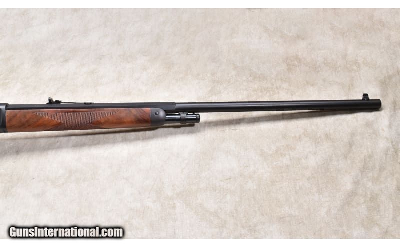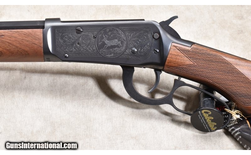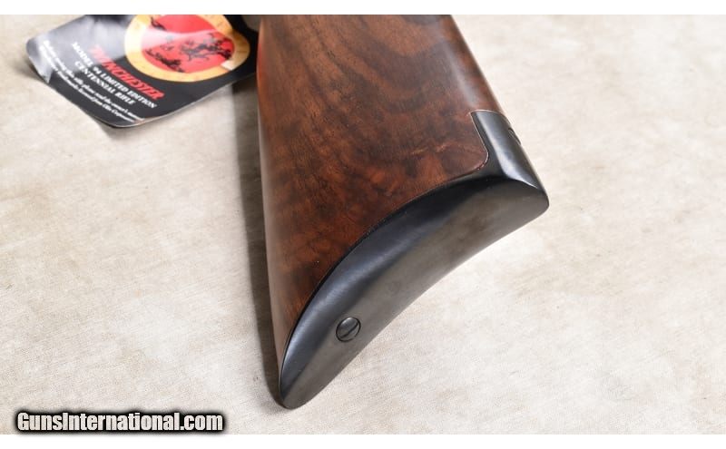 Description: This Centennial Edition of the Model 1894 was manufactured i 1994 and features a half-round blued barrel, high grade walnut wood, and flats engraved with Acanthus and wild game. .30-30 Winchester SOLD Chambers: 4 rounds Metal Condition: LNIB. Wood Condition: LNIB. Bore Condition: LNIB. Barrels: 26 inch half-round Triggers: Factory trigger Stock Dimensions: LOP: 13-3/8 inches Fore End: Well-matched high grade walnut. Butt Pad: Curved steel plate. Weight: 7 lb - 6 oz Sights: Gold bead and notch Item Location: Rogers |