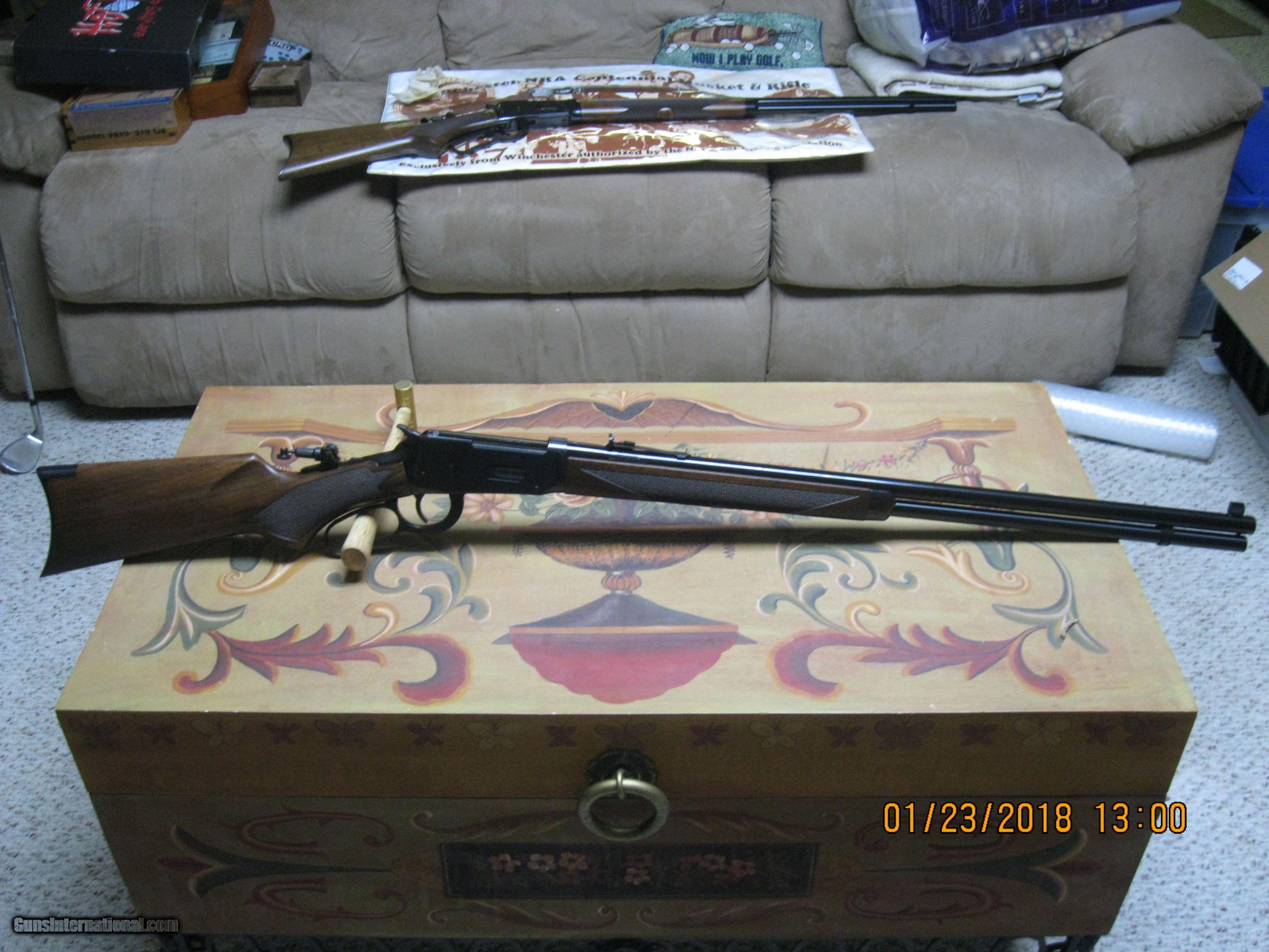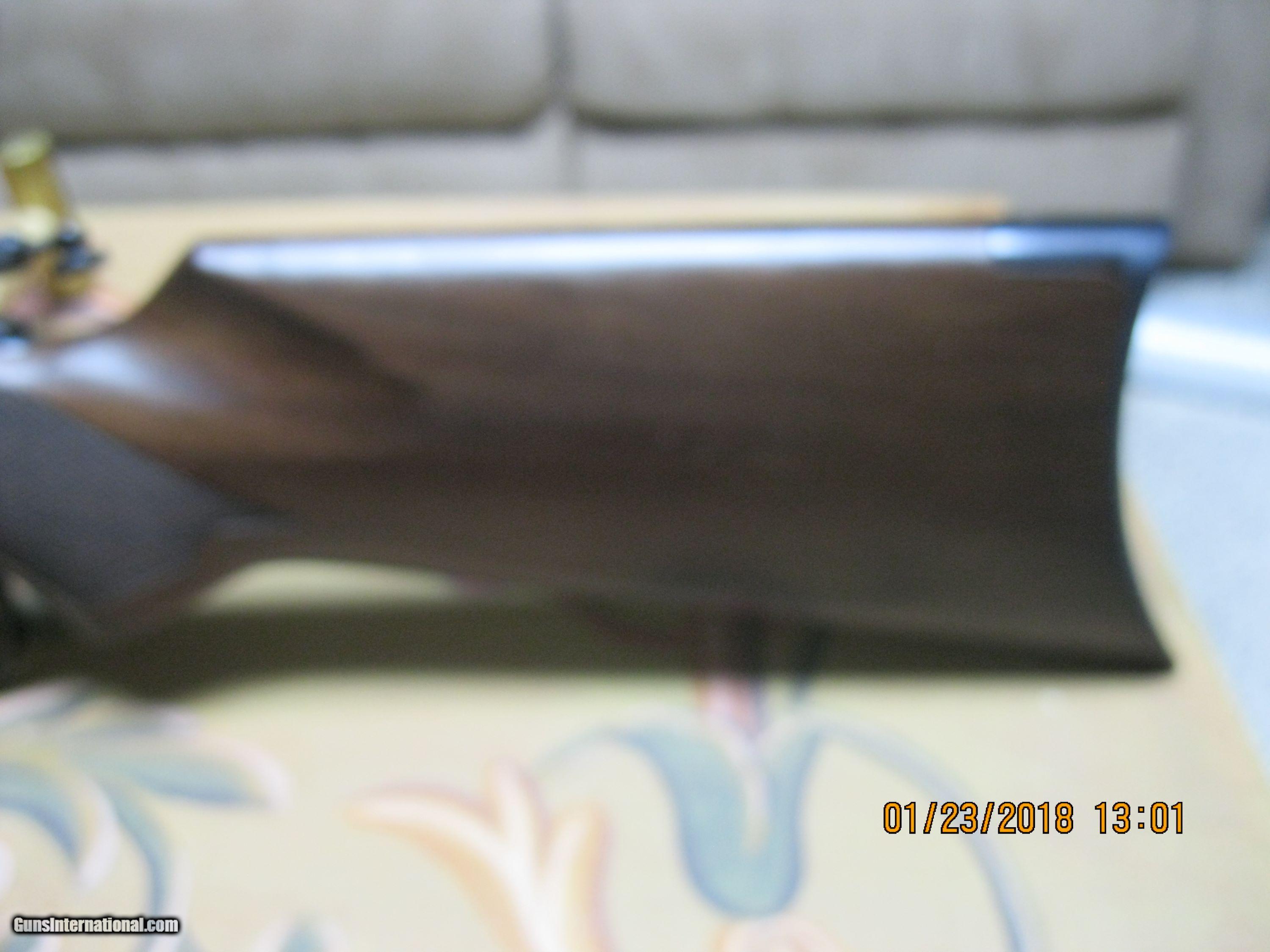 Description: This is a 26 inch barrel Winchester Legacy limited edition other Legacy models are 24 inch barrel. This edition was made for a limited time and only available in the 30-30 and 38-55 which I also have listed. They are both unfired, correct box , and paperwork. The guns look identical. These rifles come with a tang sight and tang safety not the cross bolt. I would consider using them on trade in on a 92 ro 94 take down model other than a 30 30 or 32 30. These are not Japan made guns PAYMENT PENDING SOLD Manufacturer: Winchester Model: 94 Legacy Serial Number: 6565717 Caliber Info: 30-30 Bore: new Condition: LNIB Metal Condition: new Wood Condition: new Bore Condition: new Action: lever Triggers: 1 Stock: salnut |