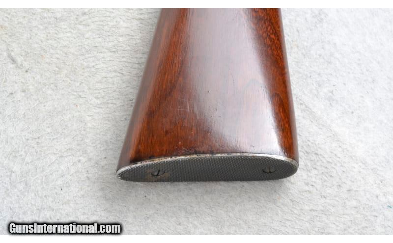 Description: This Winchester Model 94 is a right hand lever action repeating rifle in .25-35 WCF Cal. It has a 20 inch barrel. A hooded front blade sight and an adjustable notch middle sight. The butt stock is a smooth grip walnut straight grip. The forearm is a smooth grip walnut with a barrel band. .25-35 WCF SOLD Chambers: Tube Magazine. Metal Condition: Good. Some minor handling/use marks. Wood Condition: Good. Light handling marks. Appears to have been refinished. Bore Condition: Excellent. Barrels: 20 inch. Stock Dimensions: LOP 13 inches. Fore End: Smooth grip walnut with a barrel band. Butt Pad: Checkered steel plate. Weight: 6 lb. 8 oz. Sights: Hooded front blade. Adjustable notch middle. Item Location: Richfield, WI |