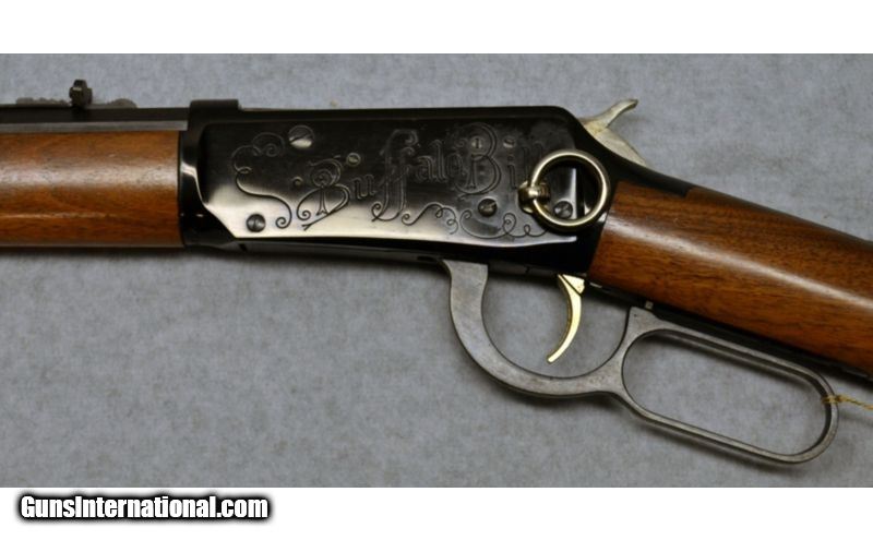 Description: Winchester Model 94 Buffalo Bill commemorative SOLD Caliber Info: .30-30 Win. Metal Condition: Very good Wood Condition: Very good Bore Condition: Very good Barrels: 18" octagonal Triggers: Single Stock: Walnut, smooth Stock Dimensions: 13.375" LOP Fore End: Walnut, smooth Butt Pad: Nickel plated smooth plate, some patina on it Weight: 7.20 lbs Sights: Buckhorn sights Extras: Original box Item Location: Grandville, MI |