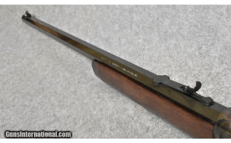 Description: Winchester 94 .30-30 Win. Case color receiver, lever, forend tip and buttplate. Octagonal barrel. Cabela's stamp on top of receiver. SOLD Caliber Info: .30-30 Win. Metal Condition: Excellent. Wood Condition: Excellent. Bore Condition: Clean with bright lands. Barrels: 24 inch Octagonal. Triggers: Single curved trigger. Stock: Straight grip, smooth, wood. Stock Dimensions: 13 1/2 inch LOP. Fore End: Straight, smooth, wood. Butt Pad: Case color metal plate. Weight: 6 lbs 13 oz. Sights: Fixed brass partridge front, adjustable buckhorn U-notch rear. Item Location: Kansas City, KS |