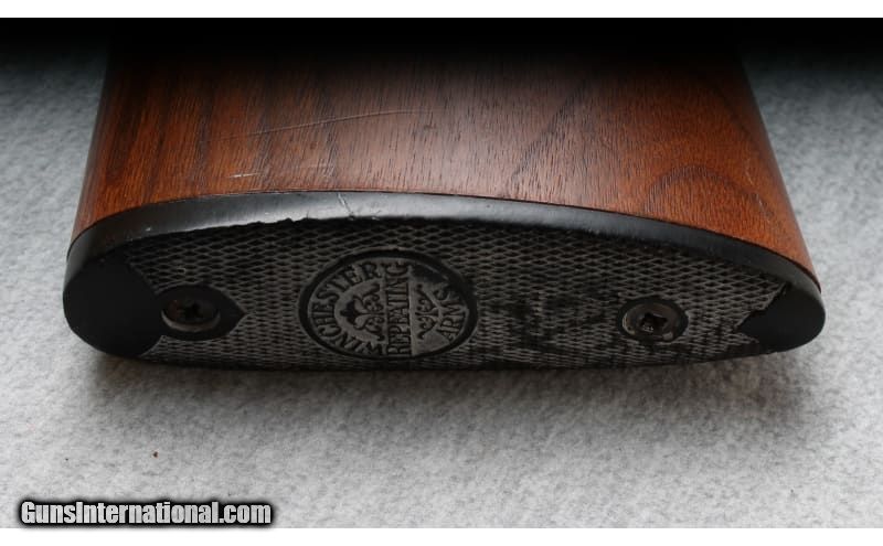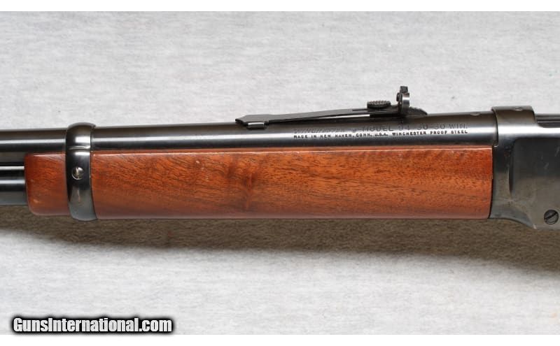 Description: Very good condition, light wear, small nicks and scratches. Classic Winchester lever action rifle, blued metal, 20" barrel, full length mag tube, factory trigger, iron sights. Gloss finish wood, smooth forend with metal band, and factory butt plate. .30-30 Winchester SOLD Chambers: Lever action Metal Condition: Very good Wood Condition: Very good Bore Condition: Bright Barrels: 20 Triggers: Factory Stock Dimensions: 13" LOP Fore End: Smooth with metal band Butt Pad: Factory butt plate Sights: Iron sights Item Location: La Vista, NE |