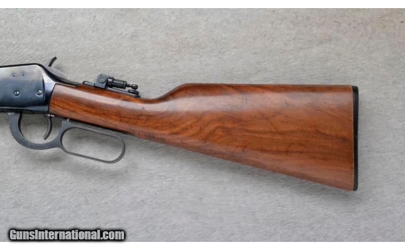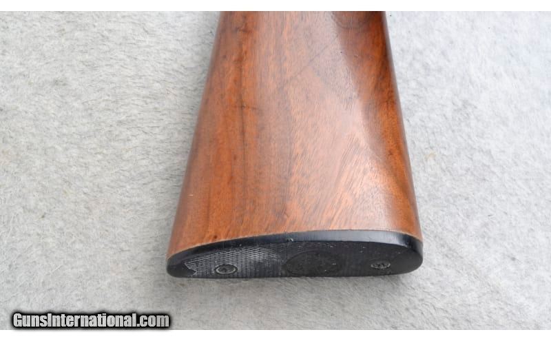 Description: This Winchester Model 94 is a right hand lever action repeating rifle in .30-30 Win. Cal. It has a 20 inch barrel. A hooded front blade sight and an adjustable peep sight rear. The butt stock is a smooth grip walnut straight grip. The forearm is a smooth grip walnut with a barrel band. Serial Number 4134078 (1975). .30-30 Winchester SOLD Chambers: Tube Magazine. Metal Condition: Good. Receiver has a lot of minor freckling. A couple of minor use marks. Wood Condition: Good. Many light handling marks. Bore Condition: Very Good. Barrels: 20 inch. Stock Dimensions: LOP 13 1/2 inches. Fore End: Smooth grip walnut with a barrel band. Butt Pad: Winchester checkered black plate. Weight: 6 lb. 8 oz. Sights: Hooded front blade. Adjustable peep rear. Item Location: Richfield, WI |