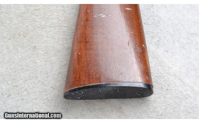 Description: This Winchester Model 94 is a right hand lever action repeating rifle in .30-30 Win. Cal. It has a 20 inch barrel. A raised blade front sight and an adjustable notch rear sight. The butt stock is a checkered grip walnut straight grip. The forearm is a checkered grip walnut with a barrel band. Serial Number 4606535 (1978). .30-30 Winchester SOLD Chambers: Tube Magazine. Metal Condition: Has light and heavy blue wear. Patina and freckling. Wood Condition: Has many light handling marks. Bore Condition: Very Good. Barrels: 20 inch. Stock Dimensions: LOP 13 1/4 inches. Fore End: Smooth grip walnut with a barrel band. Butt Pad: Winchester checkered black plate. Weight: 6 Lb. 2 Oz. Sights: Raised blade front with a brass bead. Adjustable notch middle. Item Location: Richfield, WI |