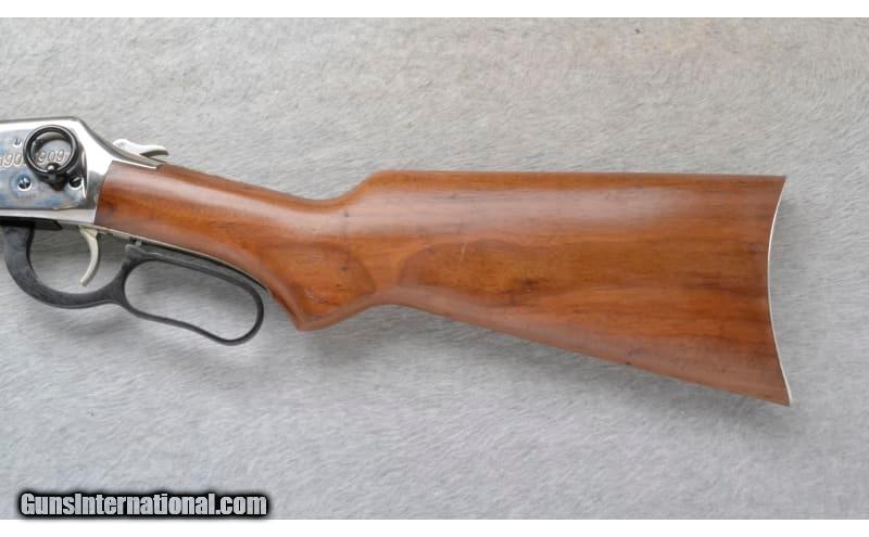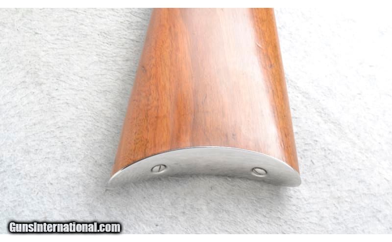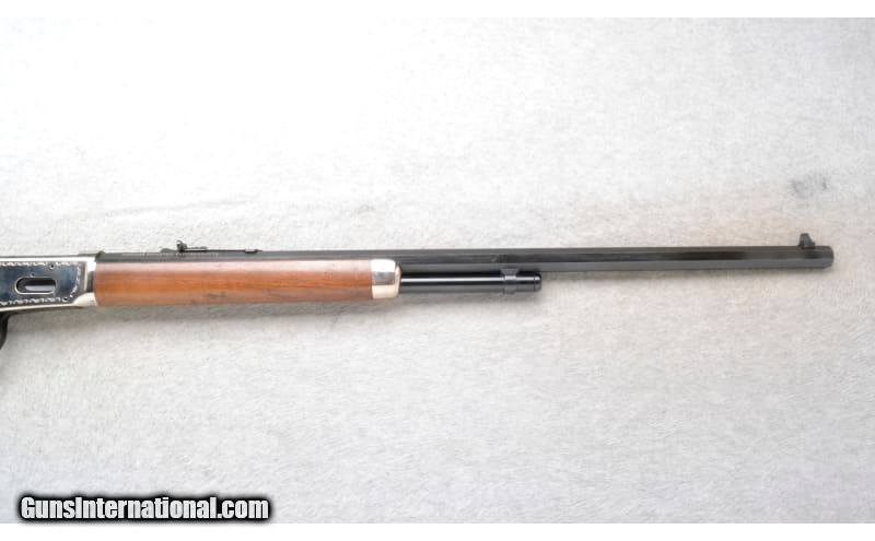 Description: This Winchester Model 94 Theodore Roosevelt Commemorative is a right hand lever action rifle in .30-30 Win. Cal. It has a 26 inch octagon barrel. A blade front sight and an adjustable notch middle sight. The butt stock is a smooth grip walnut straight grip with a commemorative medallion in the right side. The forearm is a smooth grip walnut with a metal cap. The receiver is stamped 26th President 1901-1909 with an eagle on the left side and has a saddle ring. The right side border engraved. .30-30 Winchester SOLD Chambers: Tube magazine. Metal Condition: Good. Has some handling marks and finish blemishes. Wood Condition: Good. Has handling/use marks. Bore Condition: Excellent. Barrels: 26 inch octagon. Stock Dimensions: LOP 13 1/2 inches. Fore End: Smooth grip walnut with a metal cap. Butt Pad: Smooth curved plate. Weight: 7 lb. 12 oz. Sights: Blade front. Adjustable notch middle. Item Location: Richfield, WI |
