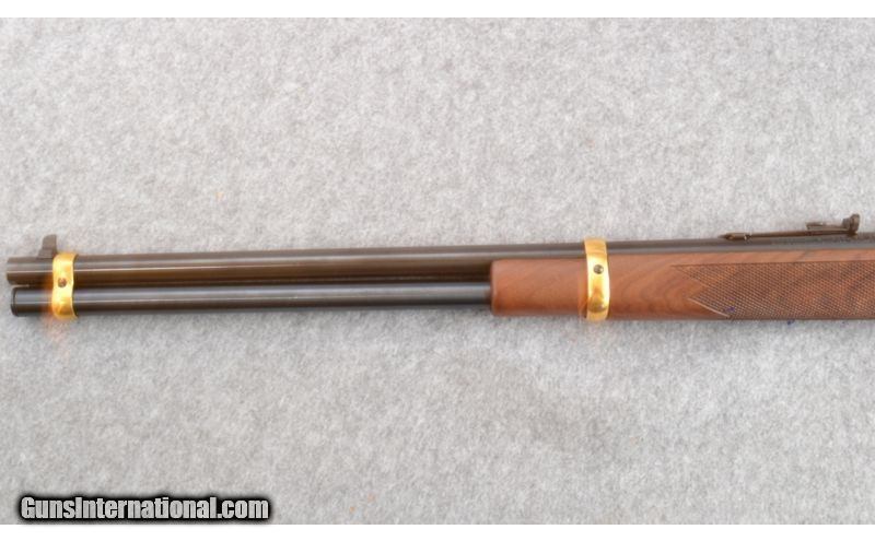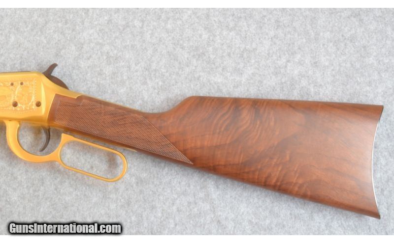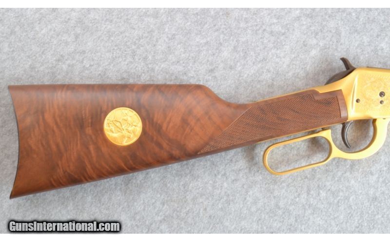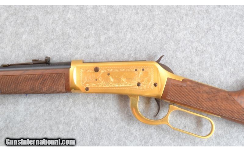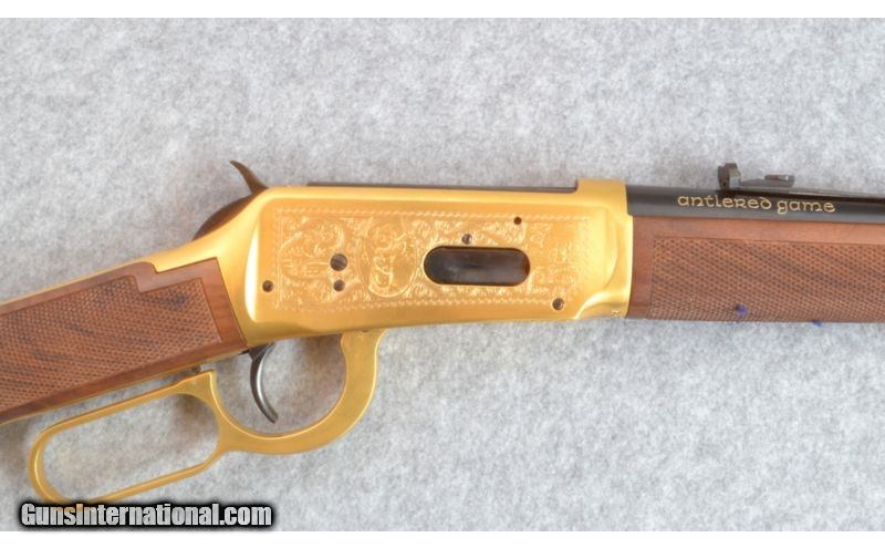 Description: Commemorative "Antlered Game" Model 94. SOLD Caliber Info: .30-30 Winchester. Metal Condition: Like new. Wood Condition: Like new. Bore Condition: Like new. Barrels: 20 inches. Triggers: Factory black. Stock: Wood with checked pistol grip and Antlered Game Medallion. Fore End: Wood checked grip. Butt Pad: Blued steel. Weight: 6 lbs. 8 oz. Sights: Notch rear and blade front. Extras: Box. Item Location: Lone Tree, CO |