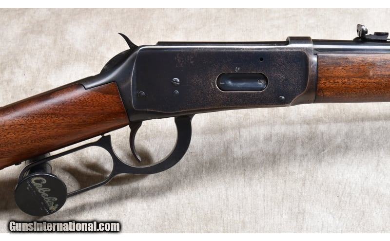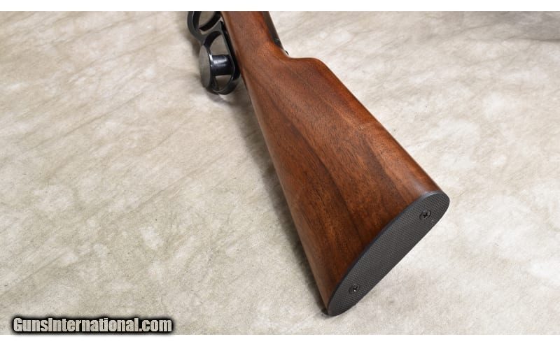 Description: Built in 1981, this little carbine measures 38 inches overall. It has plain, but nice, walnut stock, shotgun style steel butt plate, and a shiny bore. Nice little gun for deer, pest control, and woods running. .30-30 Winchester SOLD Chambers: 7 rounds Metal Condition: Good.The blue is good on barrel and magazine. The receiver some blue wear and also some shallow pits and surface rust. Wood Condition: "Very good. Finish is good, and the wood stands proud of the metal. Bore Condition: Shiny and bright with good rifling. Barrels: 20-inch Triggers: Factory trigger. Stock Dimensions: 13-1/4 inch LOP. Fore End: Well-matched smooth walnut. Butt Pad: Steel plate Weight: 6 lb - 7 oz. Sights: Silver bead and notch open sights. Drilled and tapped for receiver sight. Item Location: Rogers |