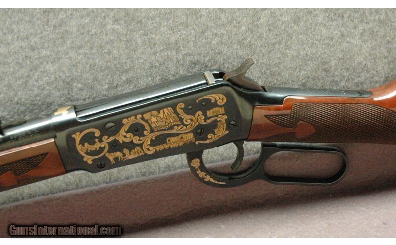 Description: Winchester Model 94 Texas Sequicentennial rifle, .38-55 Win. Appears as new, this is 1 rifle in a 2 rifle set selling for $5999.98 for both guns. See gun ID 8433830 for the 2nd rifle. SOLD Caliber Info: .38-55 Winchester Metal Condition: Excellent, Appears As New Wood Condition: Stock is Excellent, Appears As New Bore Condition: Bright Barrels: 24" Barrel, Gold Decoration on Receiver and Barrel Triggers: Factory Trigger Stock: Premium Wood, High Gloss Finish Stock Dimensions: 13 1/4" LOP Fore End: Checkered with Metal Cap Butt Pad: Curved Metal Butt Plate Weight: 6 Lbs 12 ozs Sights: Iron Sights Extras: With knife, presentation case and box Item Location: La Vista, NE |