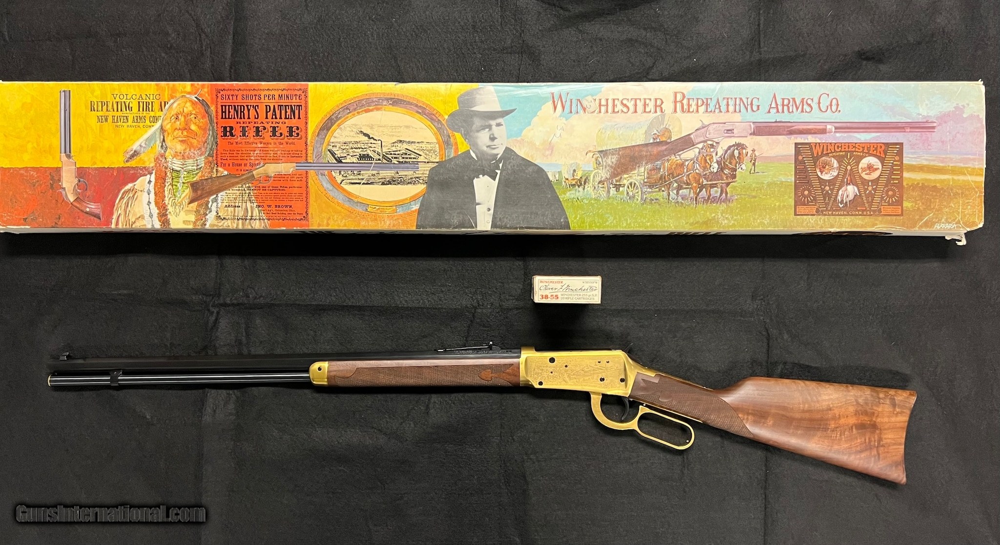 Description: Guns Listing ID: 1101715 1980 Oliver F. Winchester commemorative rifle, chambered in .38-55 Win (Unfired), original box, paperwork, and commemorative box of ammunition. SOLD Manufacturer: WINCHESTER Model: 94 Caliber Info: .38-55 WIN Condition: Used - Non-Certified Barrels: 20 BARREL |