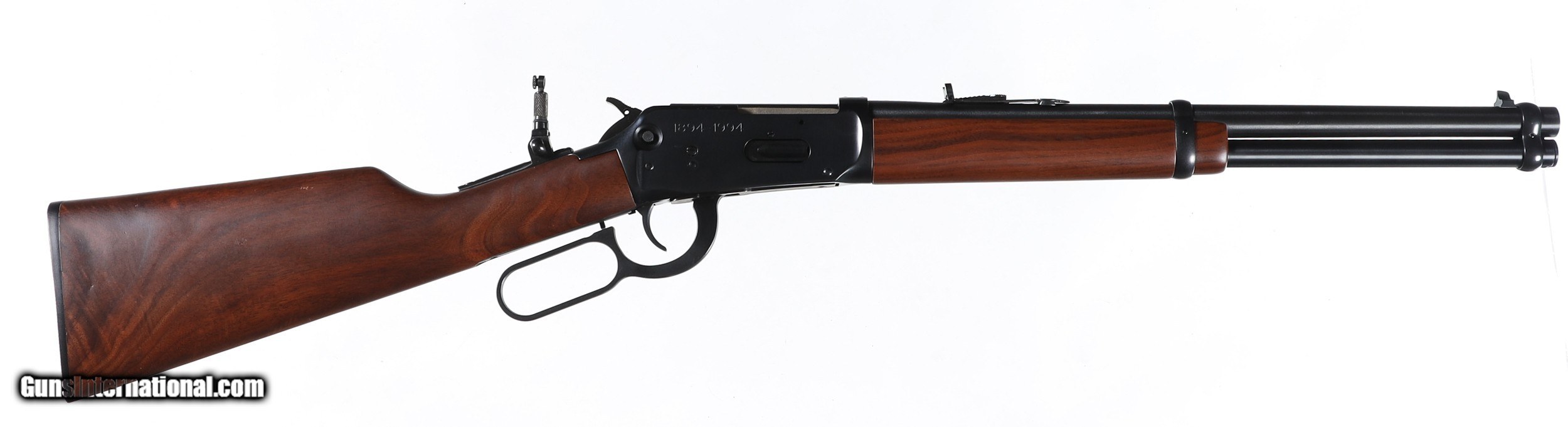Description: Excellent plus overall condition. Right side of receiver marked 1894-1994. Features a rear tang mounted peep sight. Winchester's Model 94AE is a classic lever-action rifle that is one of the most prestigious of its kind. This 94 "Angle Eject" edition features a cross-bolt safety, polished blue finish on the barrel and receiver, as well as a high quality checkered walnut stock. This particular 94AE, firing a .44 Rem Mag from an uncommon 16" barrel, makes for a great brush gun. Maintaining a nostalgic action and appearance, combined with today's rifling technology, this model serves as a great hunting rifle overall. • Free Shipping, No Credit Card Fees. • Lay-a-way available for this firearm. • 1/3 Down, a 1/3 in 30 Days 1/3 in 60 Days. SOLD Manufacturer: Winchester Model: 94AE Serial Number: 6136328 Barrel Length: 16 |