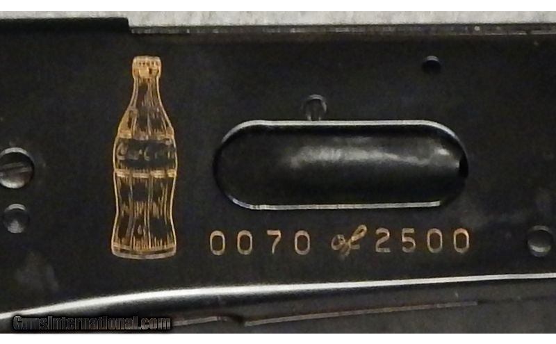 Description: Limited edition Winchesters commissioned by Coca-Cola to commemorate their 100th anniversary. Model 94AE XTR. 2500 sets were ordered, and this is number 0070 of 2500. The production consisted of less than 2000 sets. They were manufactured in 1986 but not available till 2000 due to coca cola not wanting to be associated with firearms. Most were warehoused and later distributed to Coca-Cola executives and employees. They feature select walnut, deep-cut checkering, semi-gloss finish, and the 100th Anniversary Medallion. They are complete with original packaging, factory papers, and slip cases are in great shape. Gun is unfired. .30-30 Winchester SOLD Chambers: Lever action. Metal Condition: ANIB. Wood Condition: ANIB. Barrels: 20" blued barrel with front blade sight. Triggers: Single trigger. Stock Dimensions: 13.5" LOP. Butt Pad: Blued steel butt. Sights: Fixed blade front and adjustable rear. Item Location: Acworth, GA |