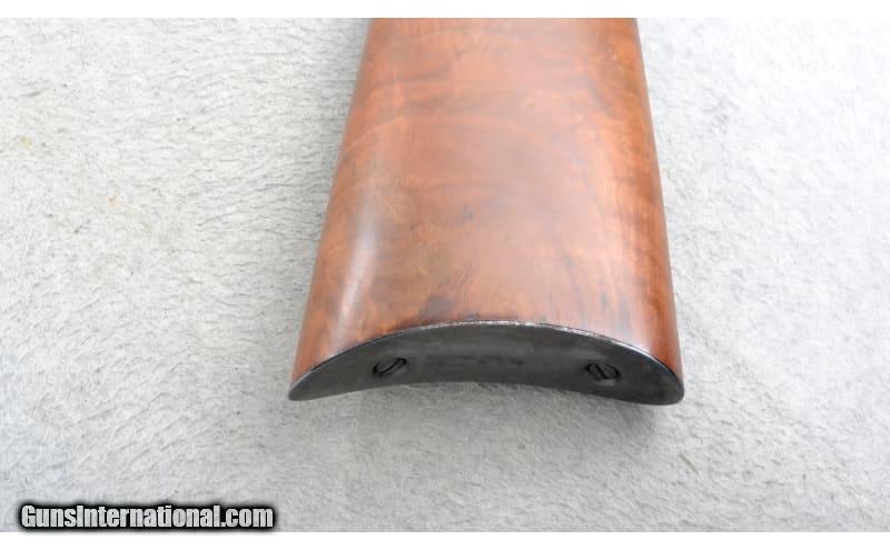 Description: This Winchester Model 94 Antelered Game is a right hand lever action repeating rifle in .30-30 Win. Cal. It has a 20 inch barrel. A blade front sight and an adjustable notch middle sight. The butt stock is a checkered grip walnut straight grip. The forearm is a checkered grip walnut with a barrel band. The receiver is nicely engraved with antereled game in outdoor scenes and scroll work. .30-30 Winchester SOLD Chambers: Full barrel length tube magazine. Metal Condition: "Fair. Some light rust spots on the butt plate, under the receiver plating on the ends and barrel band. Wood Condition: Excellent. Bore Condition: Excellent. Barrels: 20 inch. Stock Dimensions: LOP 13 1/4 inches. Fore End: Checkered grip walnut with a barrel band. Butt Pad: Curved steel plate. Weight: 6 lb. 12 oz. Sights: Raised blade front. Adjustable notch middle. Item Location: Richfield, WI |