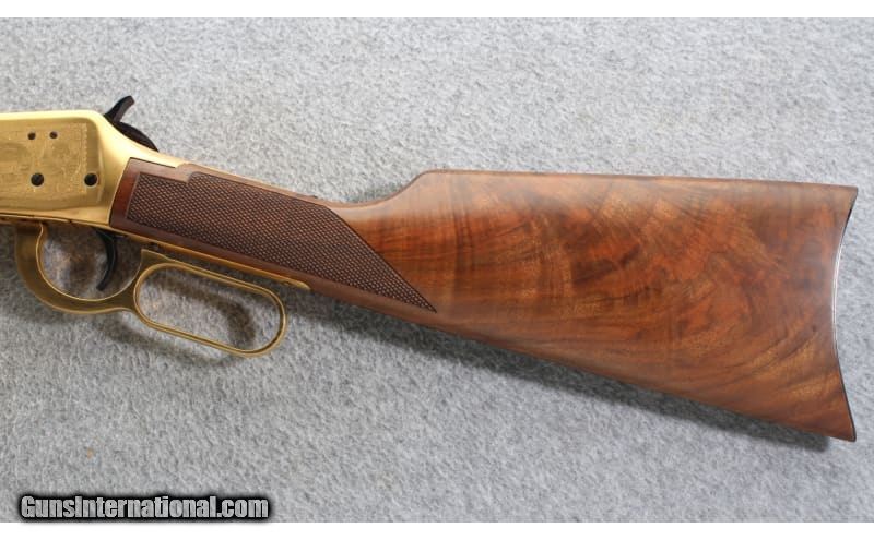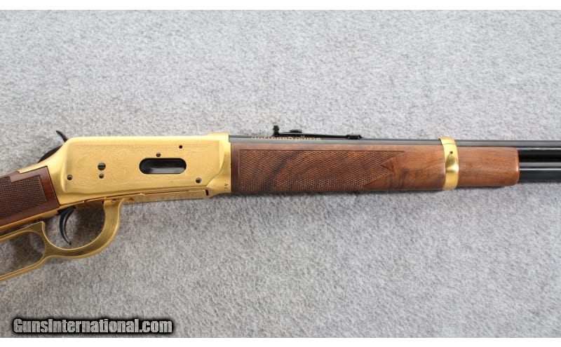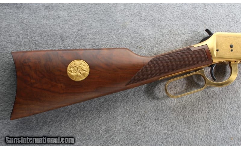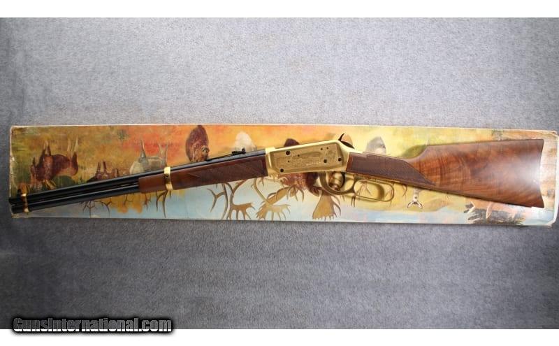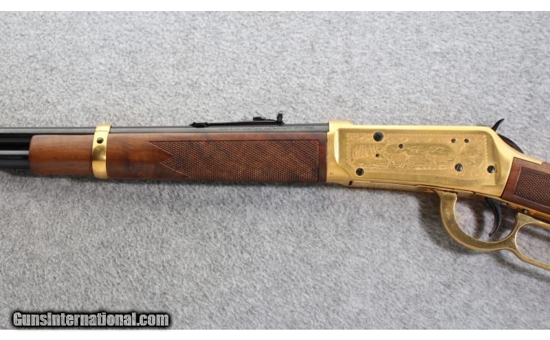 Description: A very nice Winchester 94 "Antlered Game" .30-30 winchester with a 20 inch barrel. A limited production (1978) commemorative carbine celebrating the hunt with four different antlered game scenes engraved into the receiver, and a factory gold finish. .30-30 Winchester SOLD Metal Condition: Excellent with handling marks Wood Condition: Excellent with handling marks Bore Condition: Bright and Shiny Barrels: 20 inches Triggers: Single action lever Fore End: Checkered Walnut Butt Pad: Factory metal Weight: 6 lbs 8 oz Sights: Iron sights Item Location: Gonzales, LA |