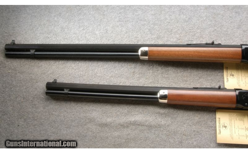 Description: This is an ANIB Winchester 94 Buffalo Bill Carbine and Rifle set. Both are as new in box and remains unfired. This set has been in a warehouse since 1968. This is a consecutive serial number set. There is dry oil on the firearms from 48 years of storage. SOLD Manufacturer: 1968 Caliber Info: .30-30 Win. Chambers: Lever action repeaters. Metal Condition: ANIB. Wood Condition: ANIB. Bore Condition: ANIB. Barrels: Carbine, 20 inch Octagon blue with sights. Rifle, 26 Inch Octagon blue with sights. Triggers: Single silver color for both. Stock: Nice walnut with a straight grip and a Buffalo Bill medallion. Stock Dimensions: 13 1/2 Inch LOP. Fore End: Matching walnut. Butt Pad: Nickel Butt Plate. Sights: Adjustable rear semi-buckhorn with elevator and a blade front on both. Extras: Comes with the factory box, sleeves, paperwork, hangtags and the factory shipping box. Item Location: Glendale, AZ |