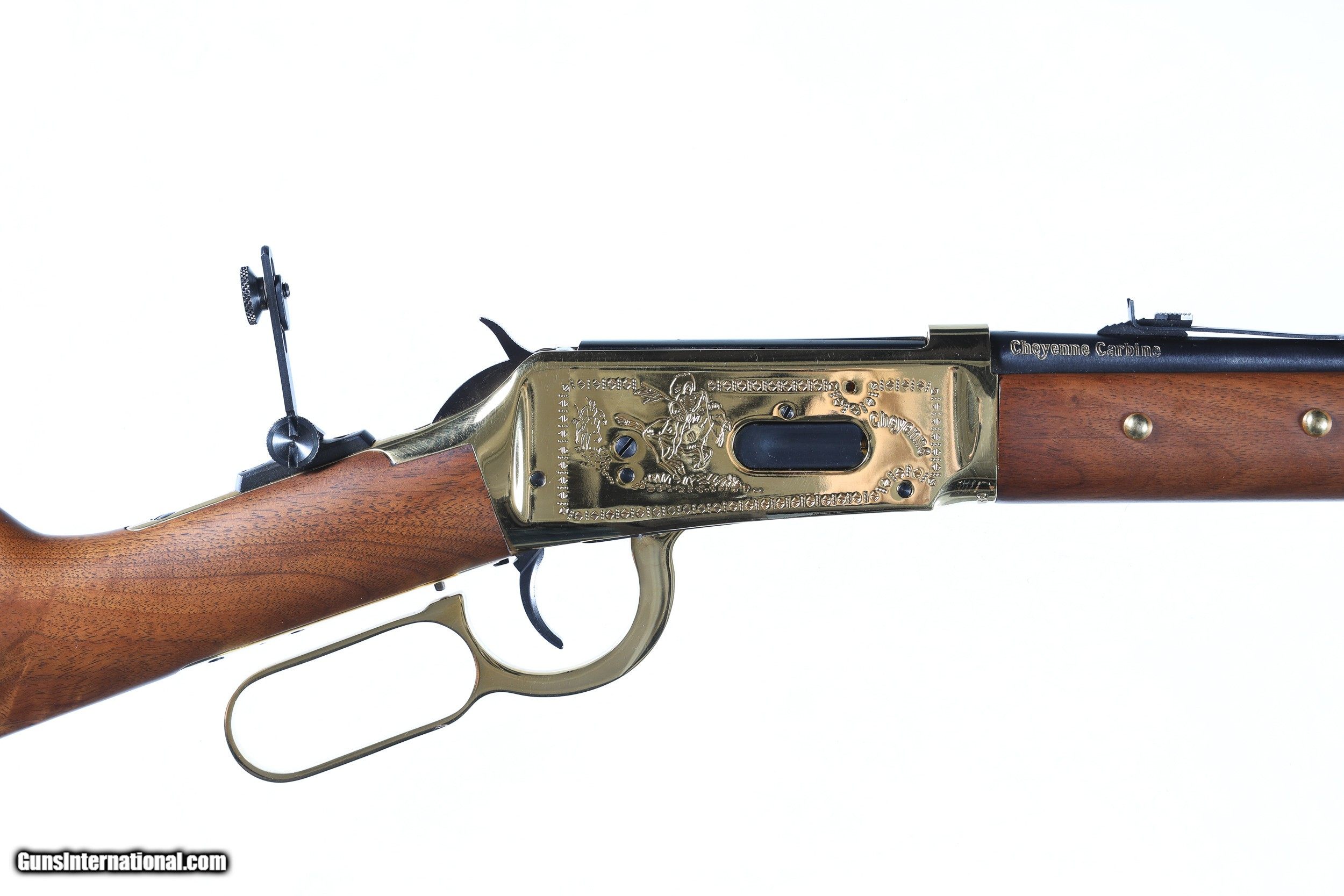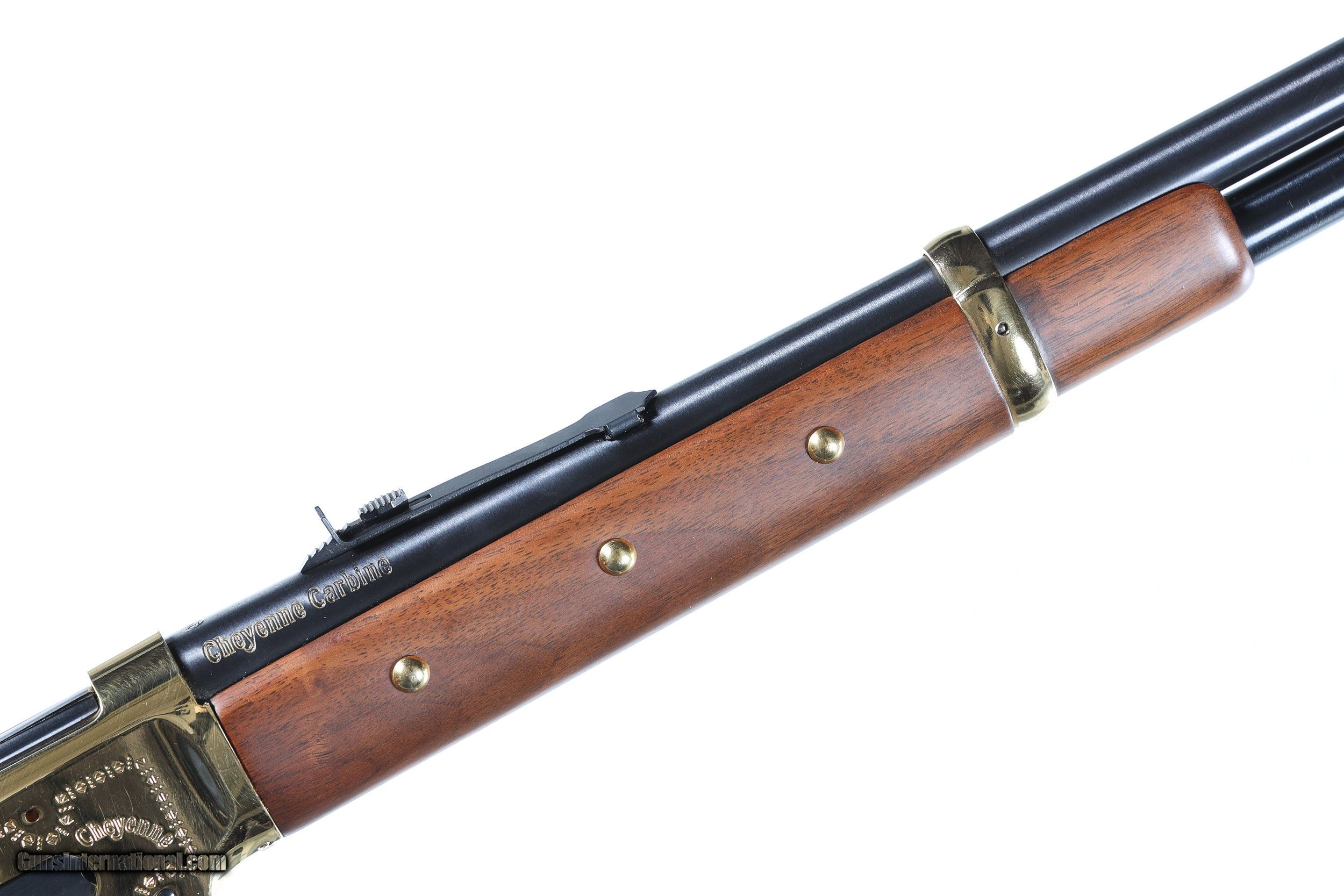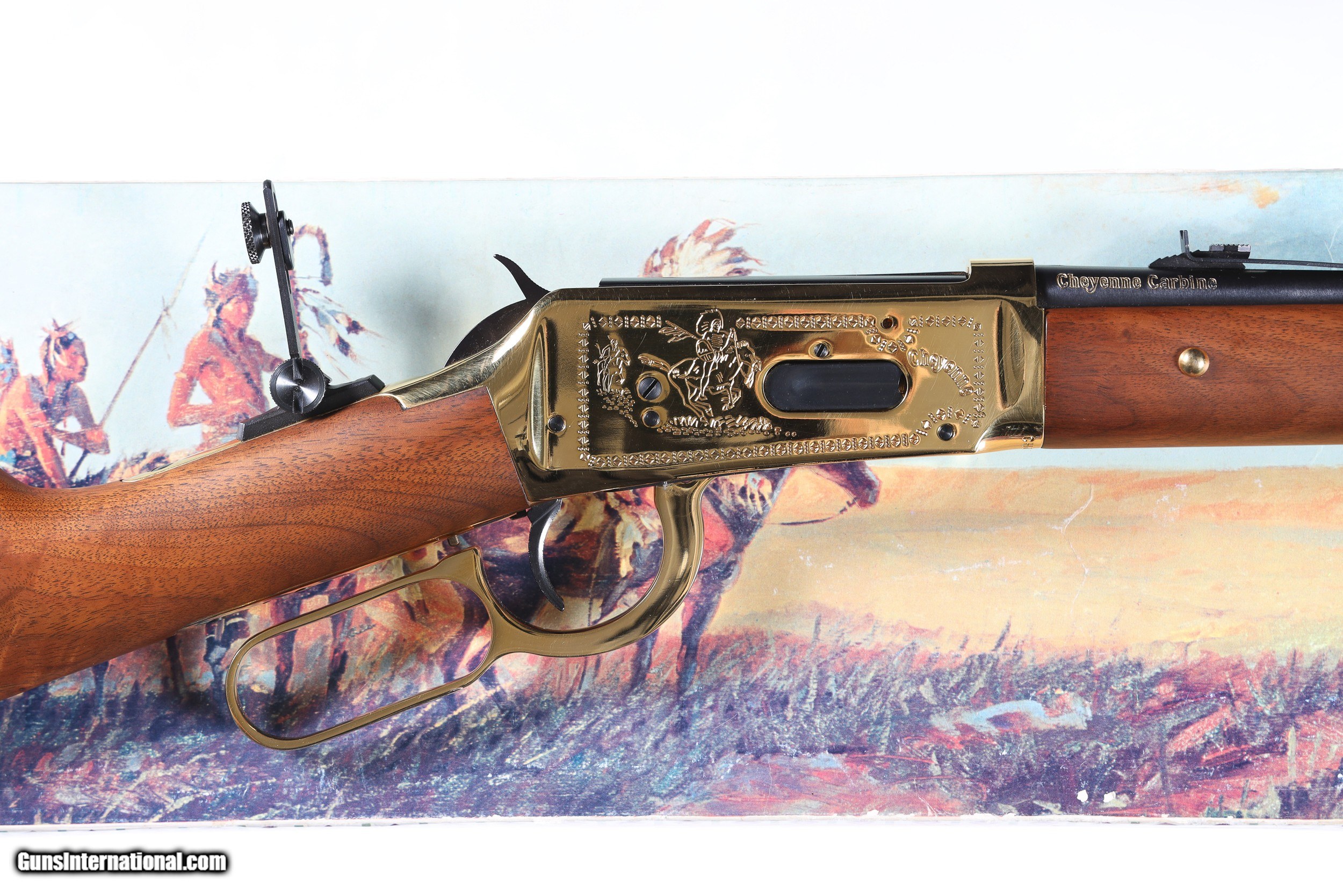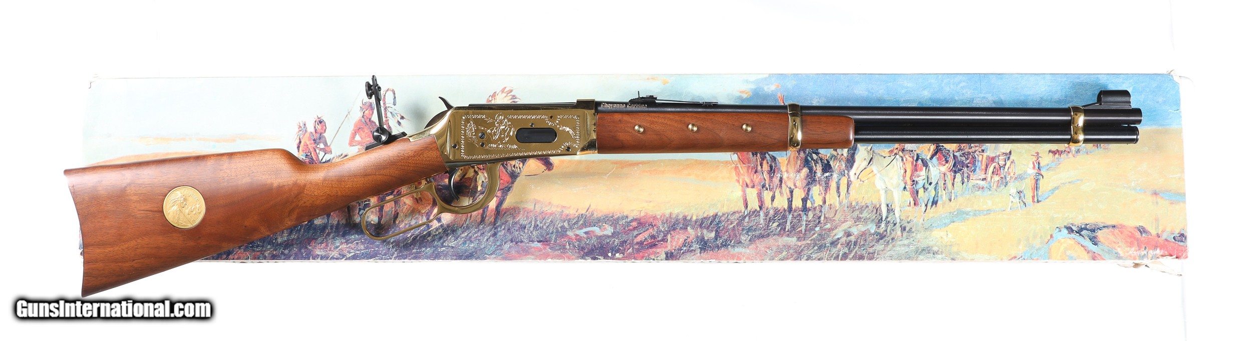 Description: Cheyenne Carbine Commemorative, excellent plus overall condition, minimal handling marks, with factory box numbered to gun. • Free Shipping, No Credit Card Fees. • Lay-a-way available for this firearm. • 1/3 Down, a 1/3 in 30 Days 1/3 in 60 Days. SOLD Manufacturer: Winchester Model: 94 Serial Number: CH04502 Barrel Length: 20 |