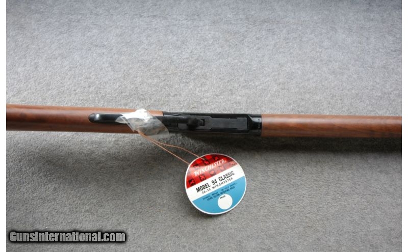 Description: This Winchester 94 Classic rifle is as new in box. The rifle has a simple roll stamp engraving on both sides of the receiver and a nice oil finish on the walnut stock and forearm. There is some dry oil on the gun from 30 years of storage. SOLD Caliber Info: .30-30 Win. Chambers: Lever action repeater. Metal Condition: ANIB. Wood Condition: ANIB. Bore Condition: ANIB. Barrels: 26 inch Octagon with sights. Triggers: Single blue. Stock: Very nice walnut with an oil finish. Fore End: Matching walnut with steel cap. Butt Pad: Checkered steel butt plate. Weight: 8 Lbs even. Sights: Adjustable semi-buckhorn rear with elevator and a fixed front. Extras: Comes with the factory box, hangtag and paperwork. Item Location: Owatonna, MN |