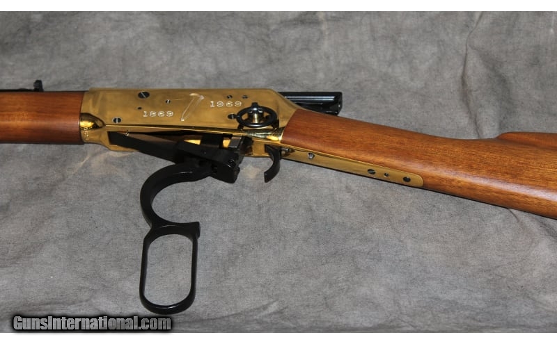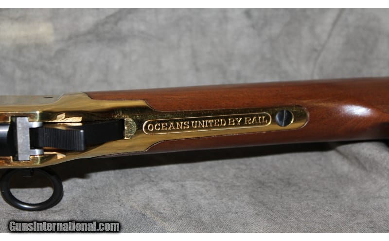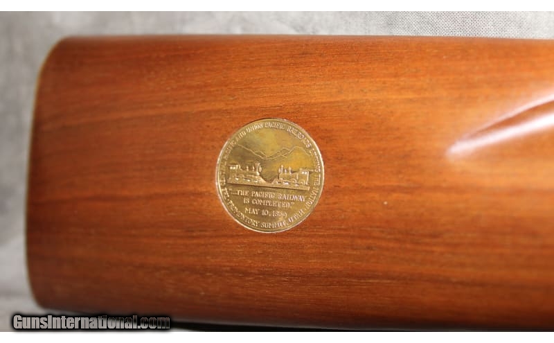 Description: This 1869-1969 Golden Spike Commemorative features beautiful engraving, polished brass, and a unique stock medallion. Would make an excellent addition to any Old West or Winchester collector. No factory box. .30-30 Winchester SOLD Metal Condition: Excellent Wood Condition: Excellent Bore Condition: Excellent Barrels: 20 Weight: 6 lb. Sights: Buckhorn Item Location: Grapevine, TX |